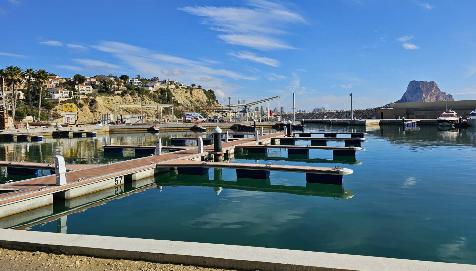 L’empresa adjudicatària de la concessió per a la construcció i explotació d’aquesta zona d’amarraments, Marina PortBlanc, està duent a terme actualment la construcció de l’estructura de la passarel·la per als vianants elevada que connectarà la zona d’entrada del port amb el dic i permetrà passejar per la zona contemplant unes vistes espectaculars del port i del litoral calpí.