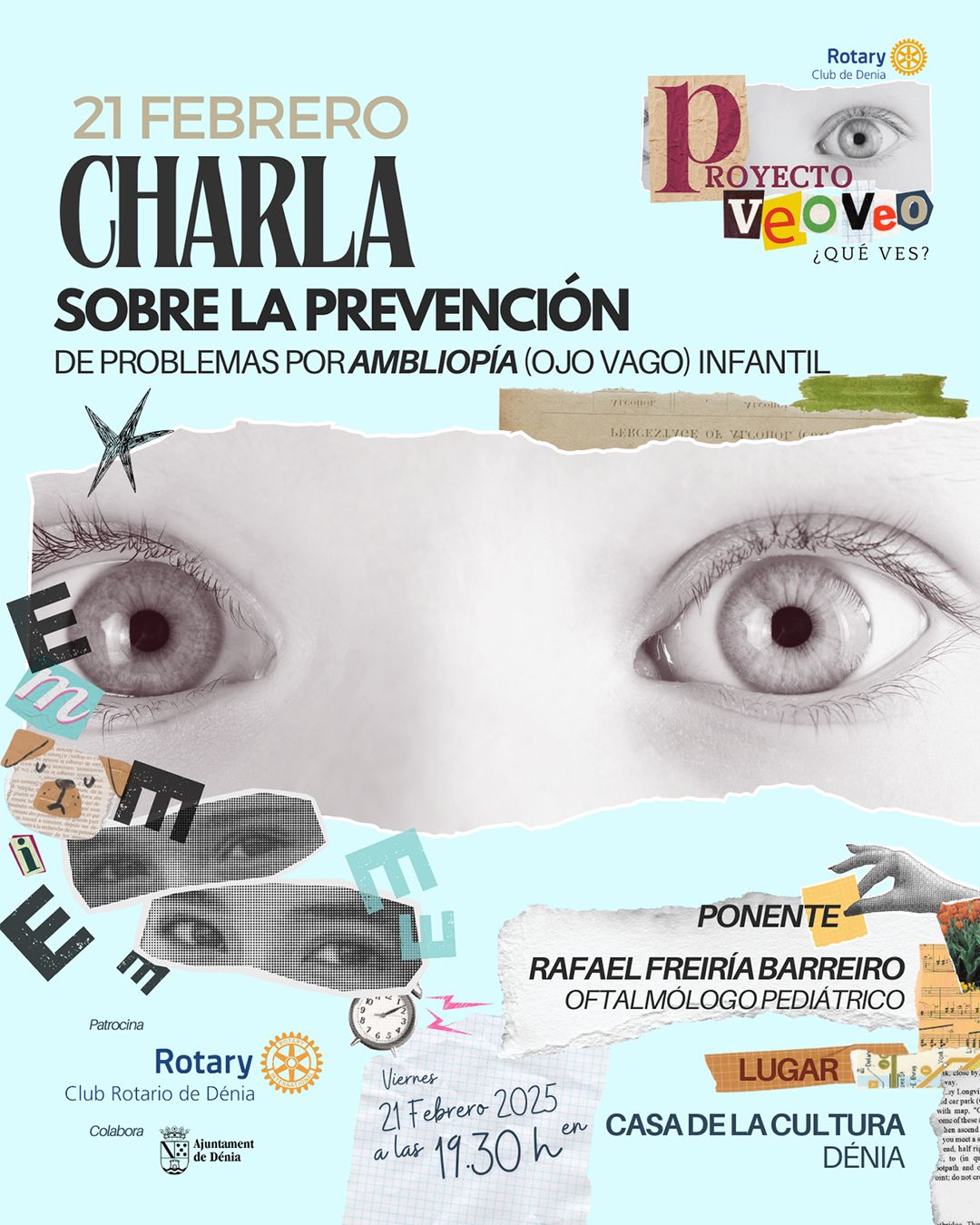 Com a part d’aquest projecte, l’oftalmòleg pediàtric Rafael Freiría Barreiro oferirà una xarrada sobre la prevenció de problemes oculars per ambliopia, el pròxim divendres 21 de gener, a les 19.30 hores, en la Casa de Cultura de Dénia.