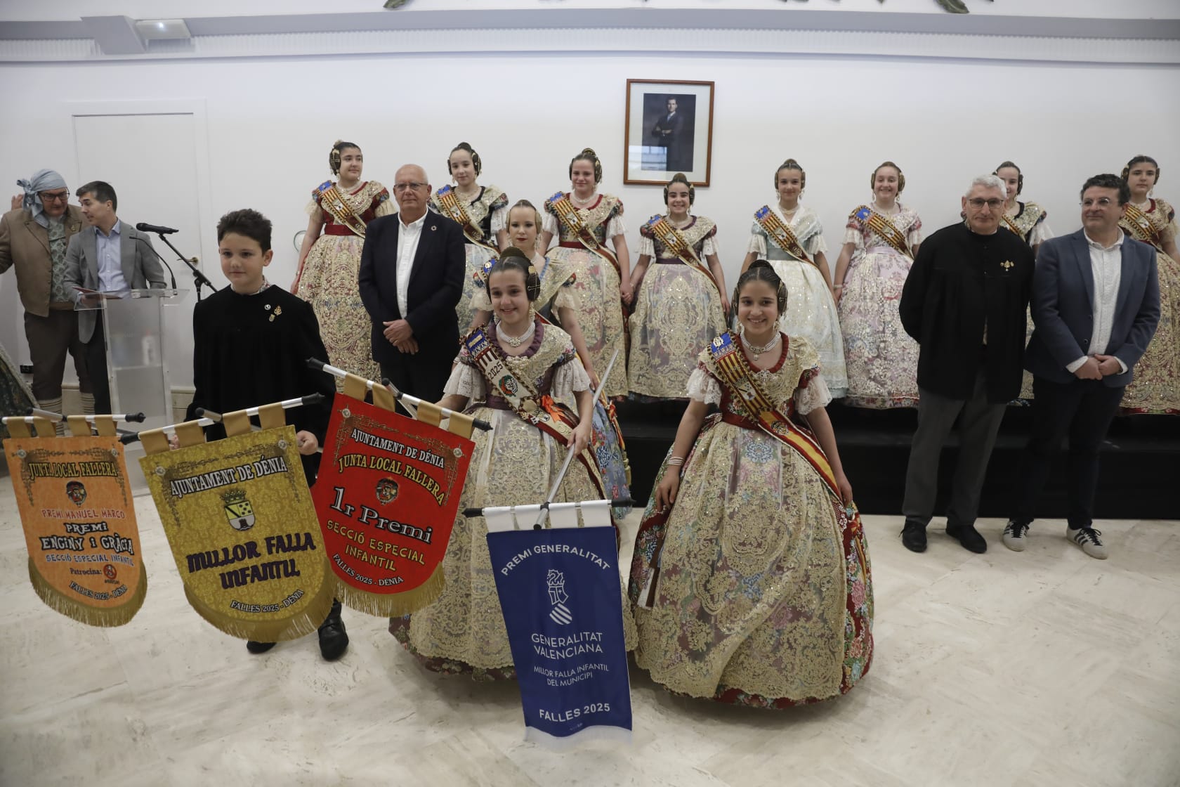 Por su parte, en Sección Primera Infantil, el primer premio ha sido para la falla Port-Rotes, (con 247 puntos), con su monumento «Valencians de coraçao», del artista dianense Vicent Gayà. Su presidente y fallera mayor infantil, Quique Pasarón y Júlia Llobell. También los premios a Enginy i Gràcia, a la promoción de los derechos de la infancia y Ninot Indultat Infantil.