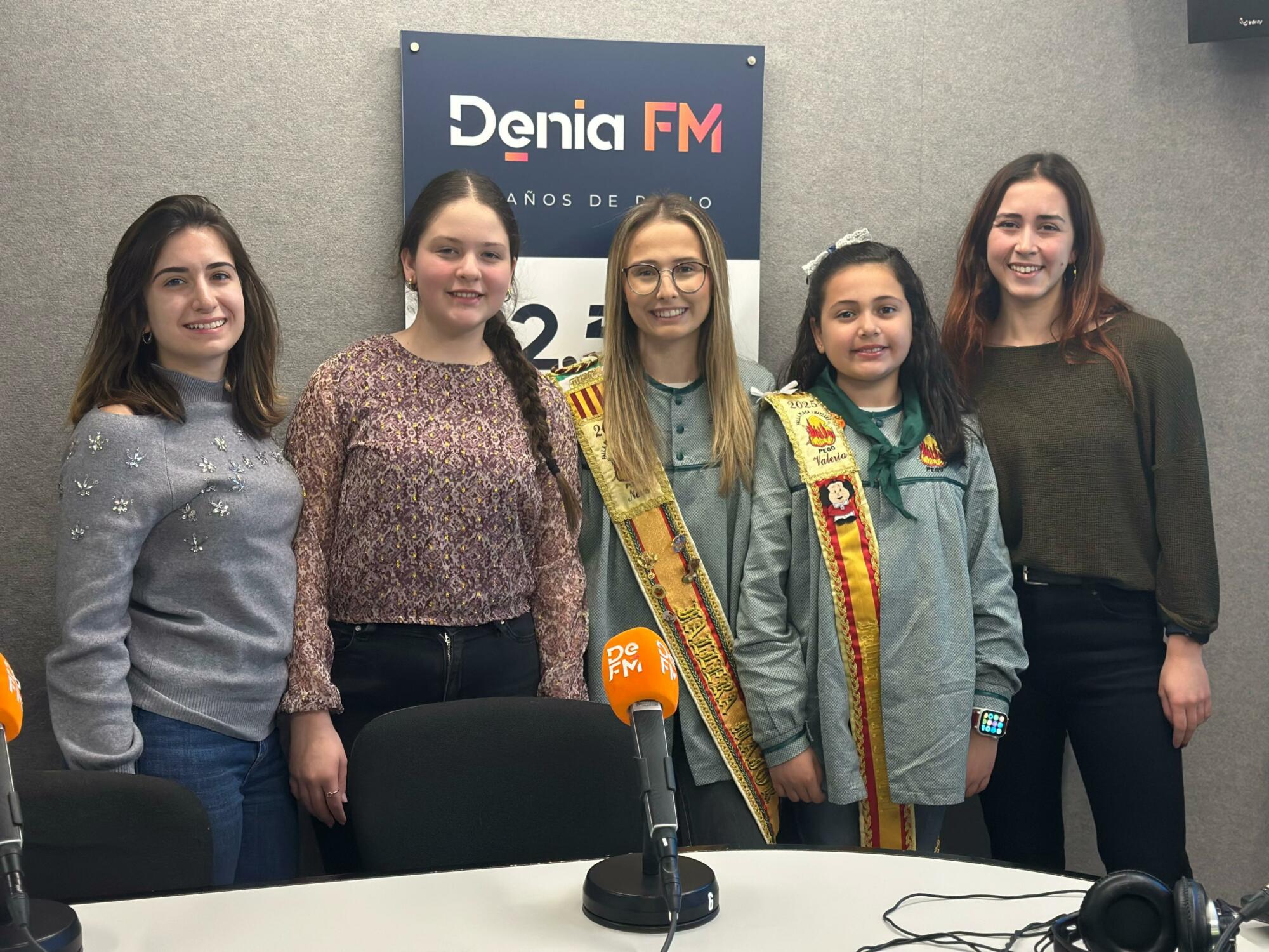 Y en la previa a los días grandes de las fiestas, han visitado el ‘Primer café’, de Dénia FM, la edil de Fiestas, Paula Orihuel y las Falleras Mayores de las comisiones Plaça i Natzarè, Neus y Valeria; y La Font, Sara y Andrea.