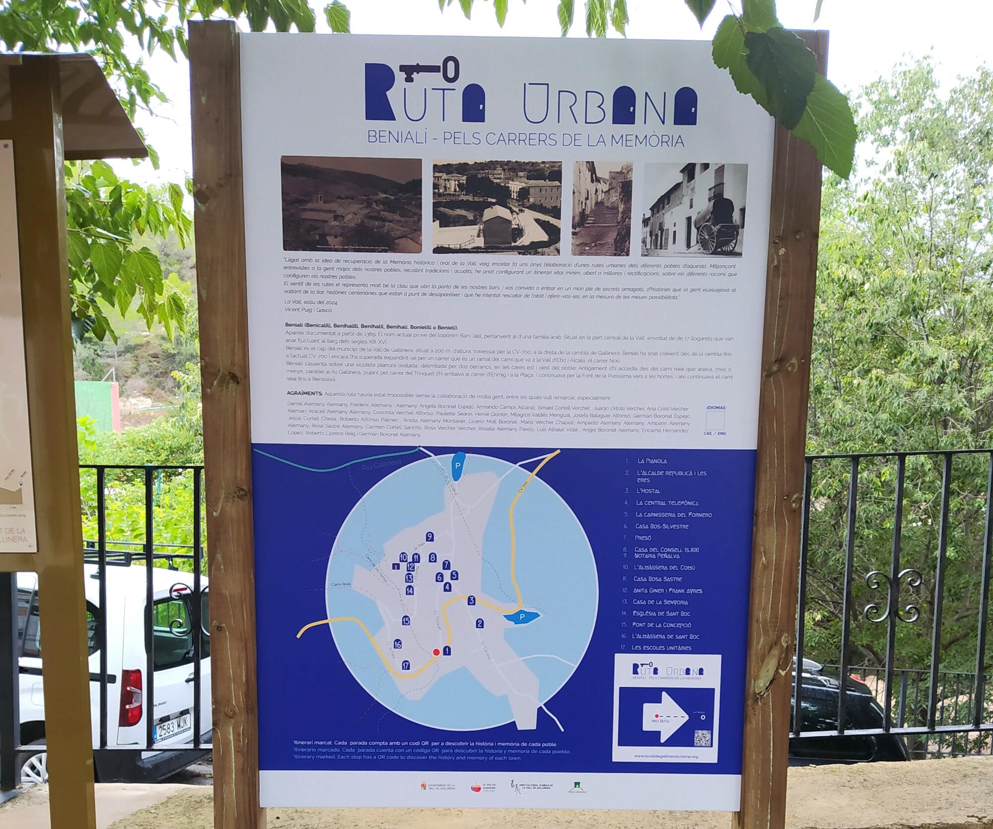 Este recorrido forma parte del proyecto “Pels Carrers de la Memòria de la Vall de Gallinera”, que comenzó en 2020 con la inauguración de la Ruta Urbana de Alpatró y que en octubre de 2024 sumó la Ruta Urbana de Benialí. Esta última cuenta con 17 paradas informativas, donde los visitantes pueden encontrar señales con códigos QR con contenidos en castellano, valenciano e inglés.