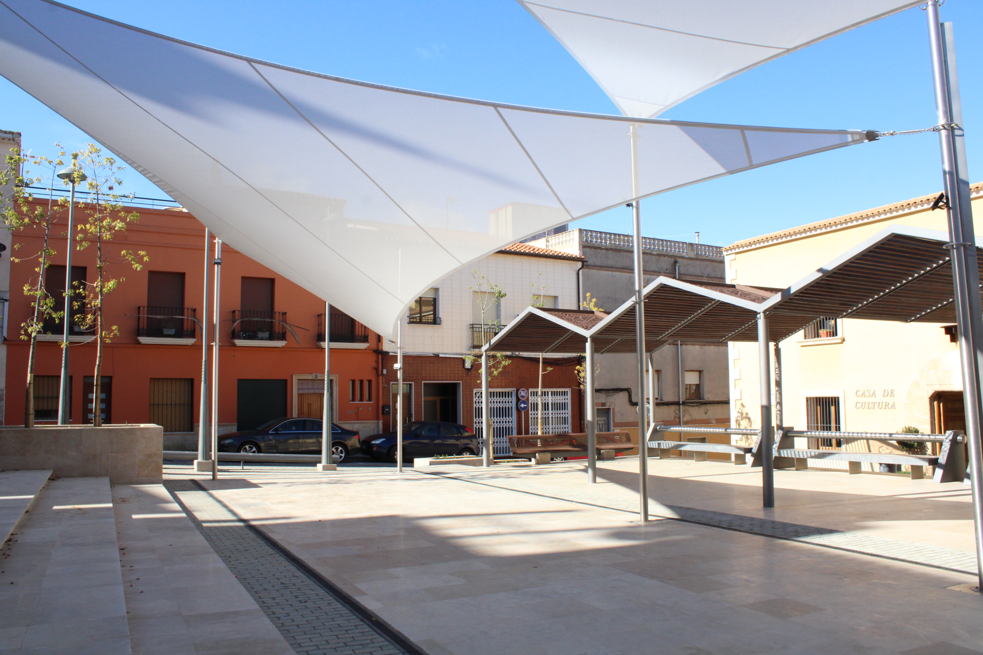 La reforma ha incorporado elementos que mejoran la funcionalidad y comodidad de la plaza. Destacan la instalación de dos grandes velas de 100 m² cada una, que se suman a los 200 m² de cubiertas ya existentes, proporcionando zonas de sombra adicionales. Además, se ha modernizado la infraestructura eléctrica y lumínica, combinando elementos preexistentes con nuevos dispositivos LED, incluyendo iluminación en los escalones para mejorar la visibilidad nocturna.