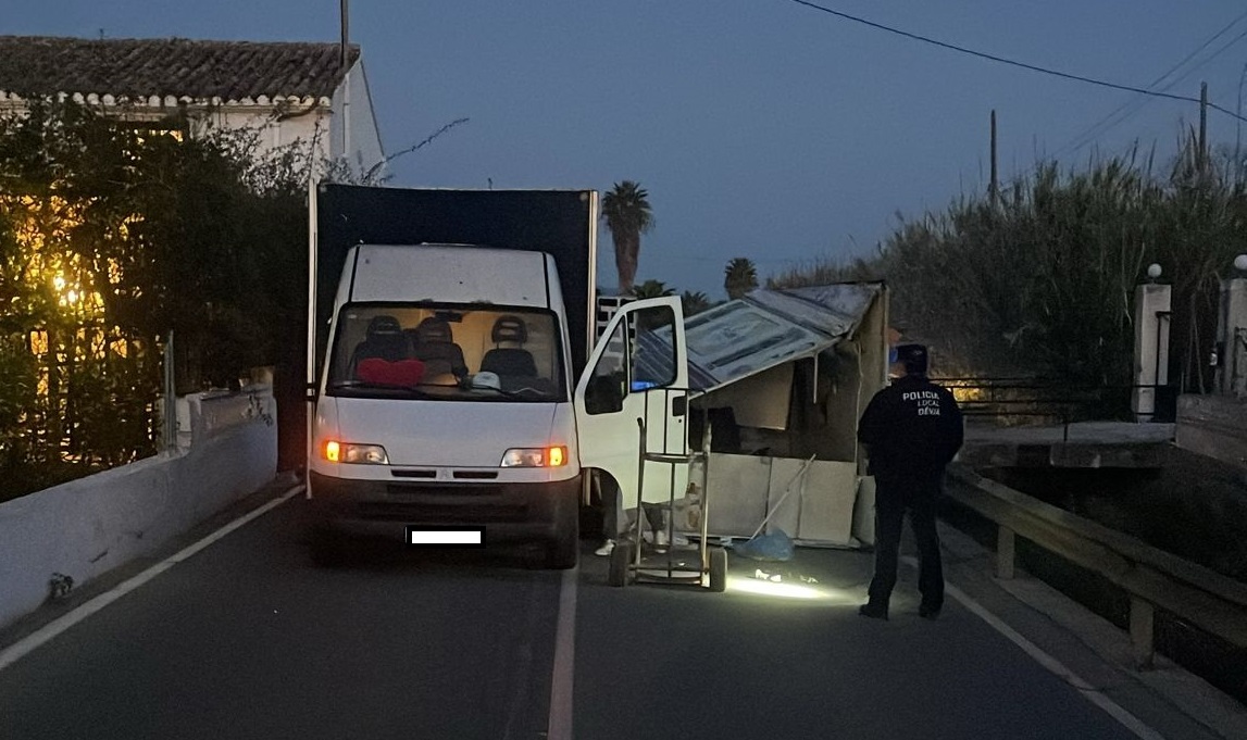 En la mañana del lunes, 7 de abril, se ha producido un accidente de circulación en el camí de Gandía, en el término municipal de Dénia. En el mismo se ha visto implicada una foodtruck, que según fuentes consultadas por esta redacción informativa, habría perdido el control, provocando el volcado de su módulo trasero.