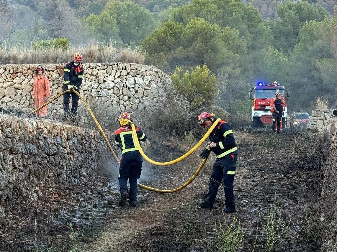 Extinguido el incendio de un bancal junto a la montaña en el Castell d’Ambra en Pego