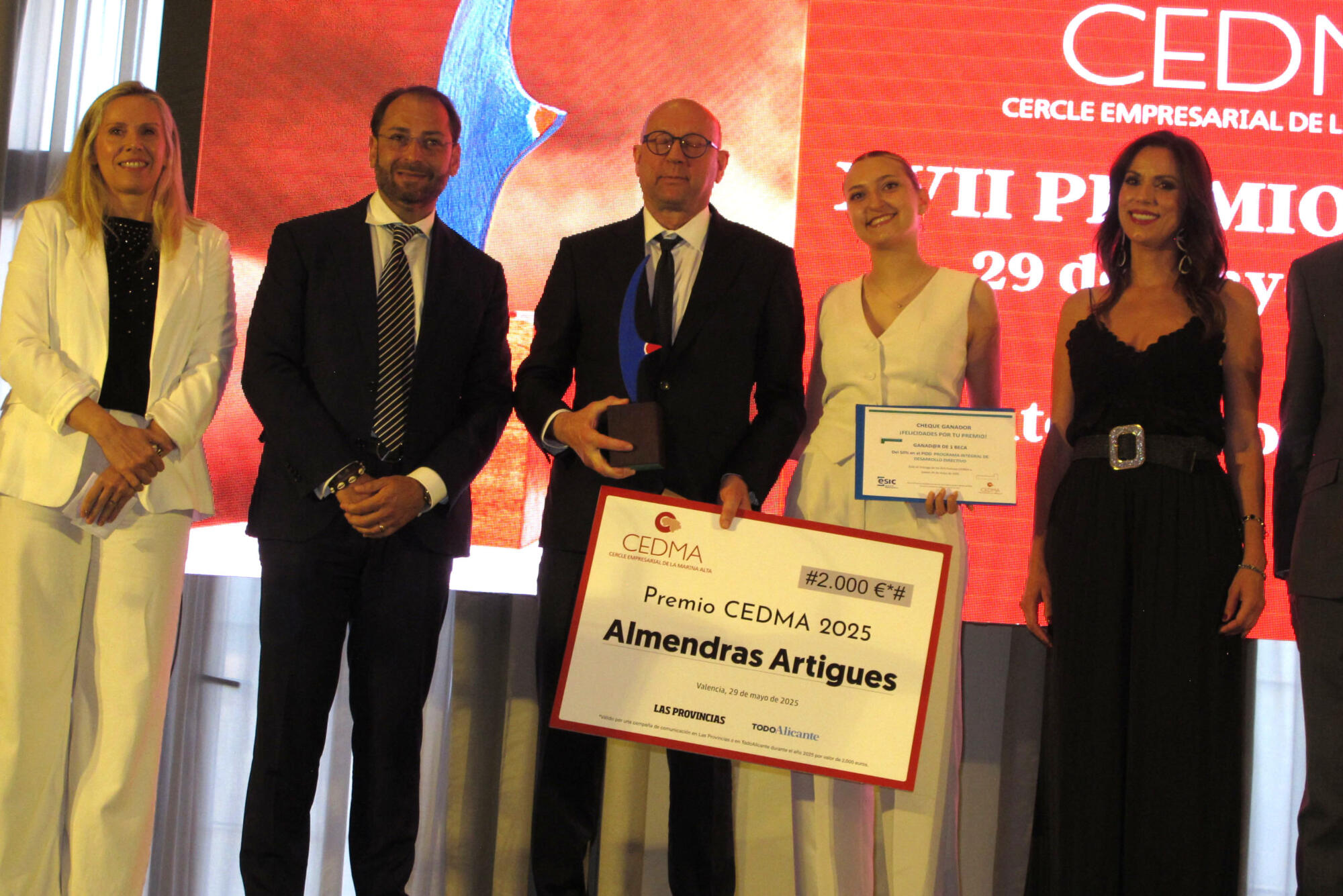El reconocimiento a empresa externa al Cercle Empresarial de la Marina Alta era para Almendras Artigues, recogiéndolo Juan Carlos Artigues y su hija Raquel Artigues. La tercera generación resaltaba que se trata de un «reconocimiento a nuestra historia, la de una empresa familiar». Incidía en que «miramos al futuro con ilusión y la firme determinación de seguir trabajando y evolucionando». Artigues explicaba que están «inmersos en un importante proceso de transformación, apostando por la sostenibilidad, el medio ambiente y la innovación tecnológica».