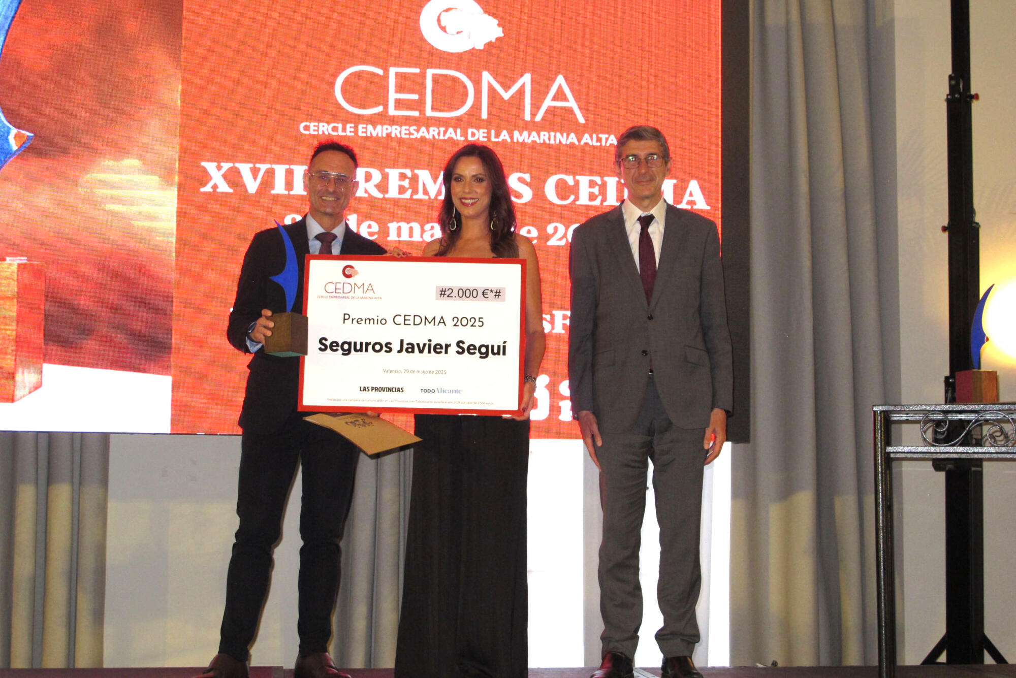 El Hotel Dénia Marriott La Sella acogía, el jueves 29 de mayo por la noche, el acto de entrega de los XVII Premios CEDMA 2025, conducido por Vega Torró y Pedro Reig, vicepresidenta segunda y secretario general de la federación empresarial, respectivamente.