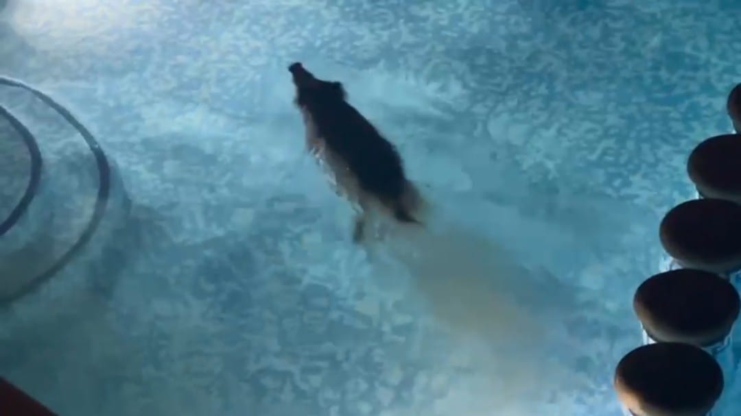 Jabalí bañándose en piscina de una urbanización en Dénia. / Vecina de Dénia