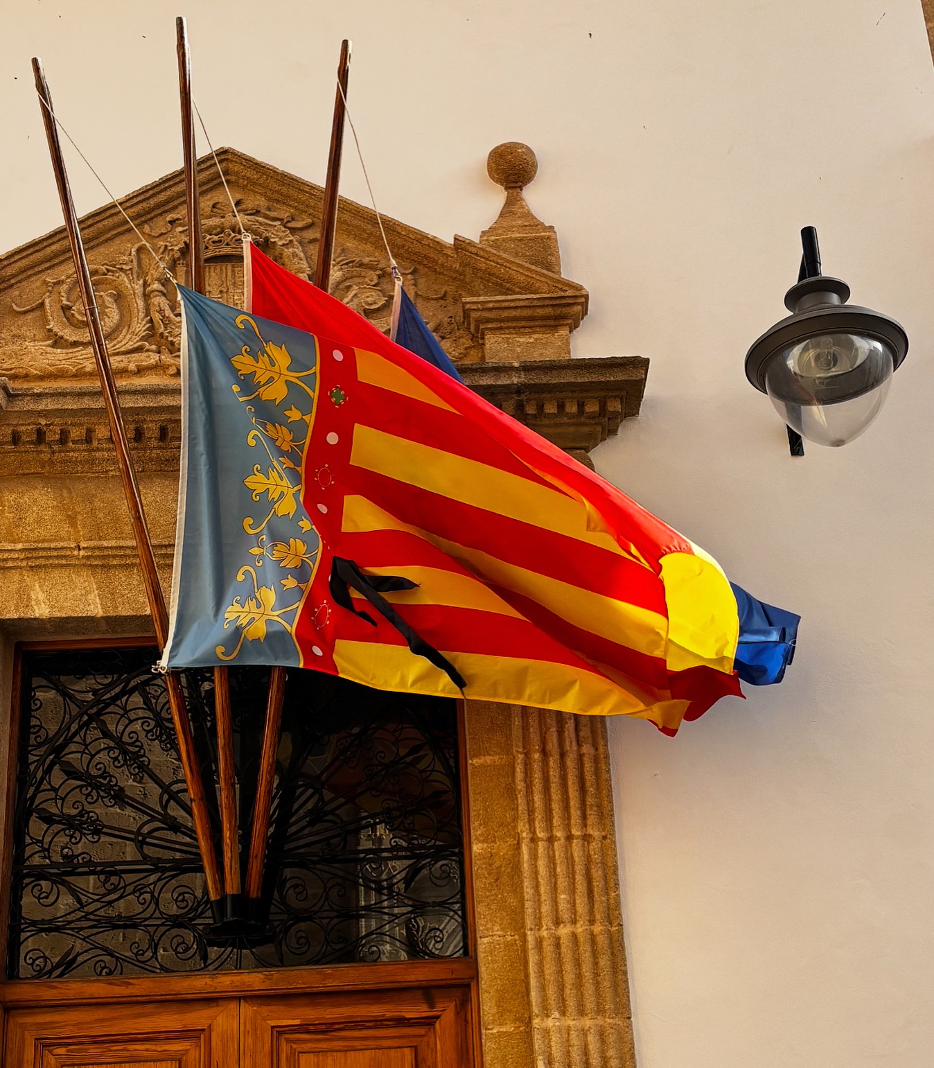 Banderas a media asta con crespón negro. / Ayuntamiento de Xàbia