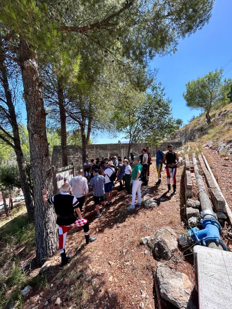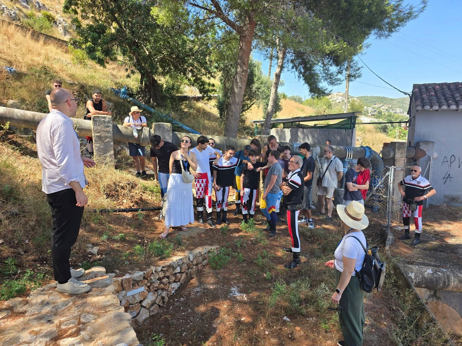 Posteriormente, el grupo visitó el depósito de agua próximo al trinquet, valorado por su particular arquitectura y su relevancia histórica. La ruta patrimonial continuó en el antiguo forn d’escaldar, ejemplo del patrimonio etnológico local.