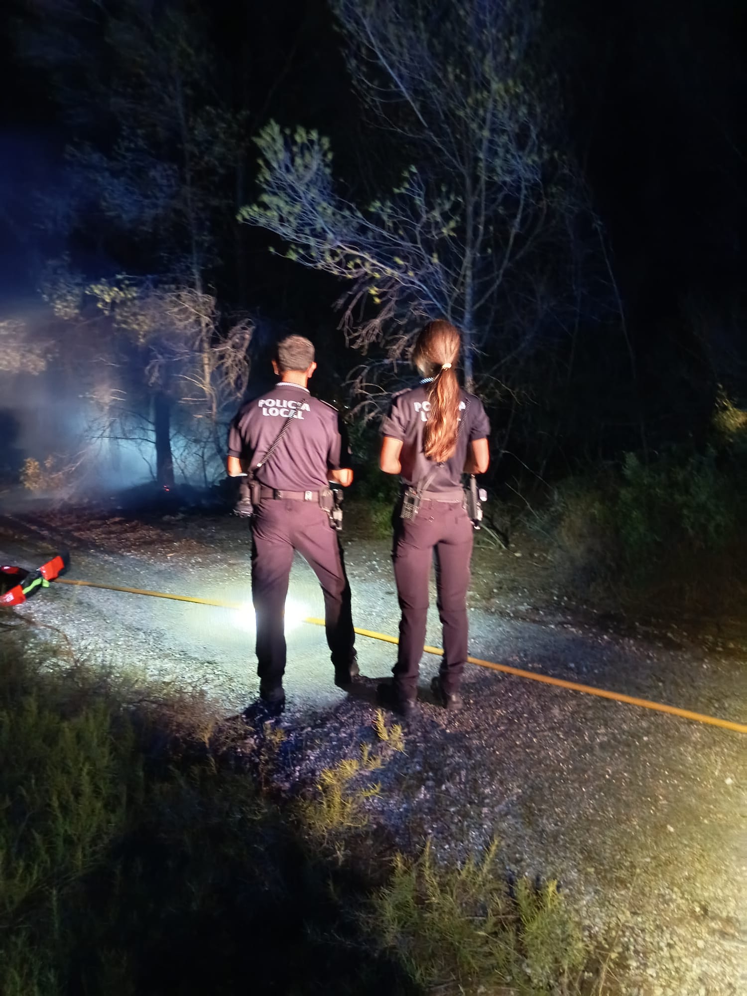 Hasta el lugar se trasladaban efectivo del parque comarcal de Bomberos de Dénia, para trabajar en las labores de extinción del fuego, rápidamente controlado. También se desplazaron agentes de la Policía Local para colaborar en las tareas de vigilancia y control; y garantizar la seguridad en la zona.
