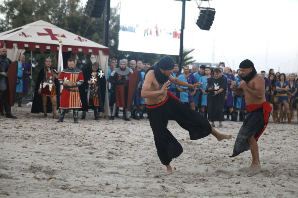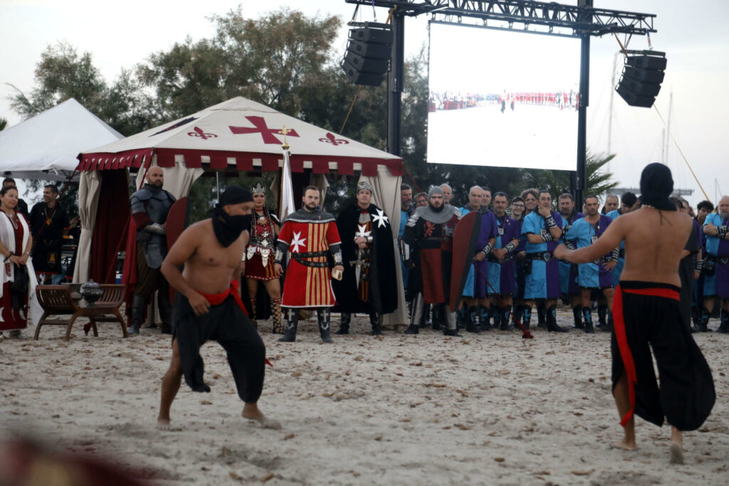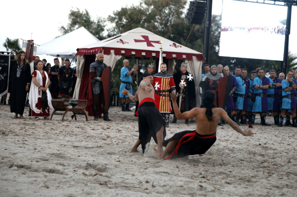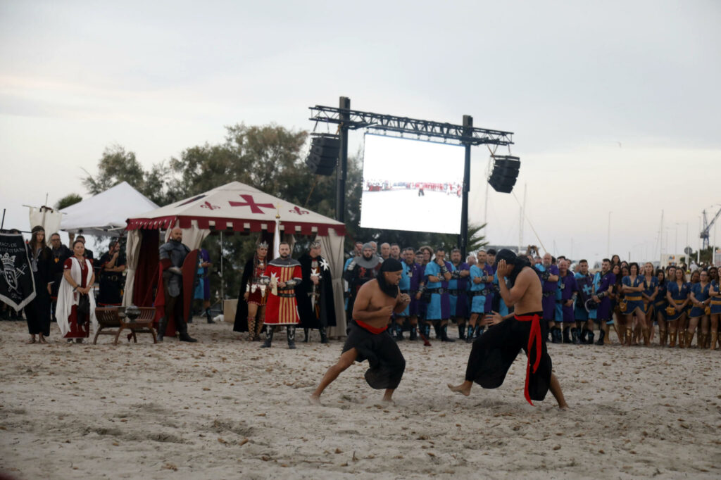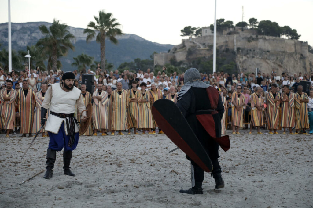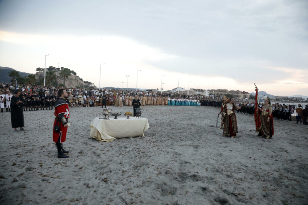 Llegó el momento de disfrutar del primer gran acto de las fiestas de Moros y Cristianos en Dénia. Este miércoles, desde las 20.00 horas, el Desembarco Moro captó la atención de centenares de vecinos, visitantes y festeros. La playa de la Escollera Norte acogió un año más este espectacular evento que congregó ambas capitanías para representar la llegada del conflicto, así como la firma de la tregua.