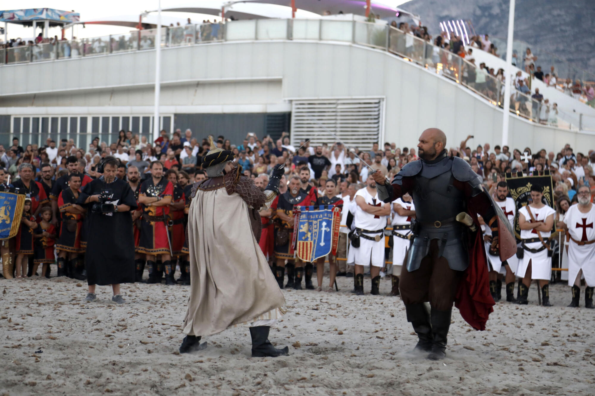 Llegó el momento de disfrutar del primer gran acto de las fiestas de Moros y Cristianos en Dénia. Este miércoles, desde las 20.00 horas, el Desembarco Moro captó la atención de centenares de vecinos, visitantes y festeros. La playa de la Escollera Norte acogió un año más este espectacular evento que congregó ambas capitanías para representar la llegada del conflicto, así como la firma de la tregua.