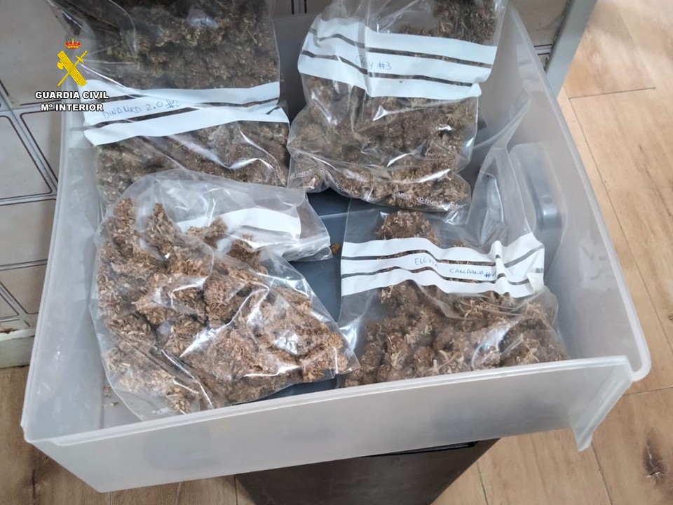 La Guardia Civil ha desmantelado una plantación de marihuana en una vivienda de Pedreguer, localizando una cantidad considerable de la droga y varios elementos destinados a su distribución. Los hechos se remontan a junio, cuando una patrulla de la Guardia Civil interceptó a un hombre de 46 años mientras circulaba en su vehículo por las cercanías de la localidad. Durante la intervención, los agentes detectaron un fuerte olor a marihuana proveniente del interior del coche, lo que generó sospechas inmediatas.