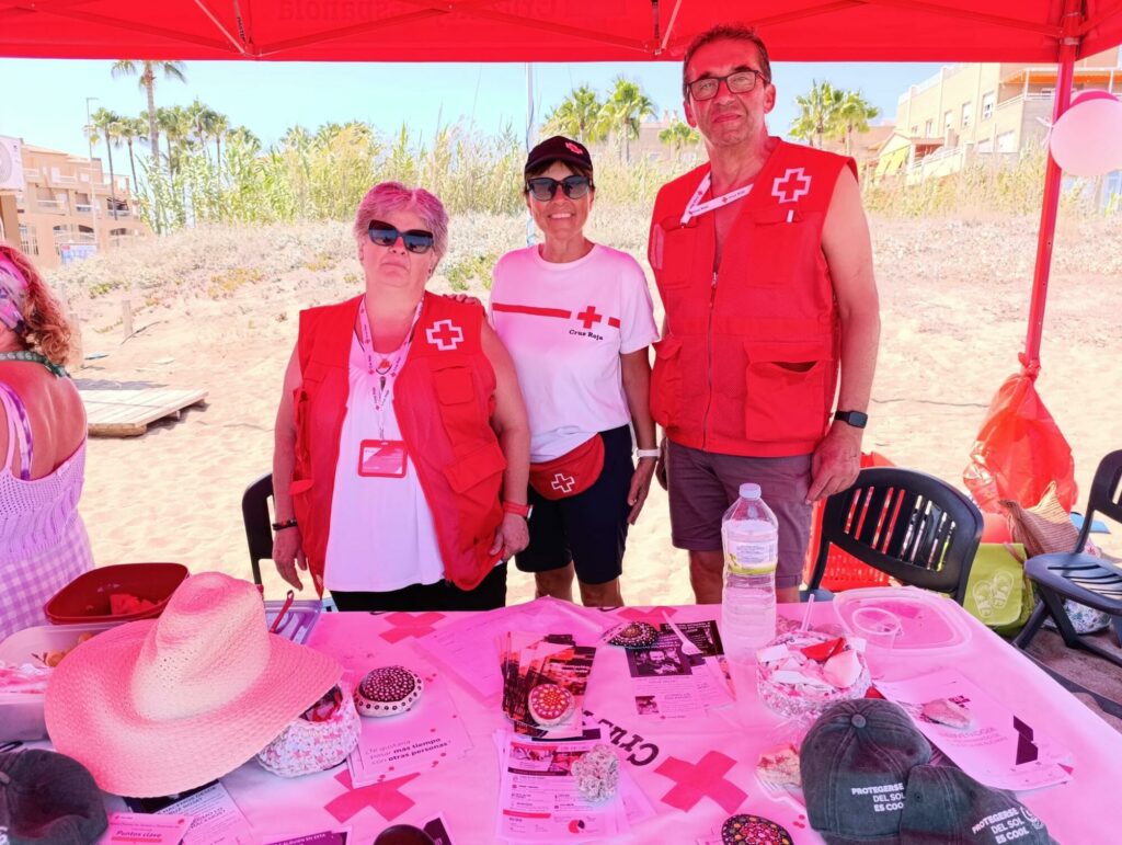 El estand de la AECC, instalado a pie de playa, fue el principal punto de atracción de una iniciativa que se desarrolló desde las 10:30 hasta las 14:00 horas y que, un año más, llevó el consejo y la atención de los profesionales sanitarios directamente hasta la arena.