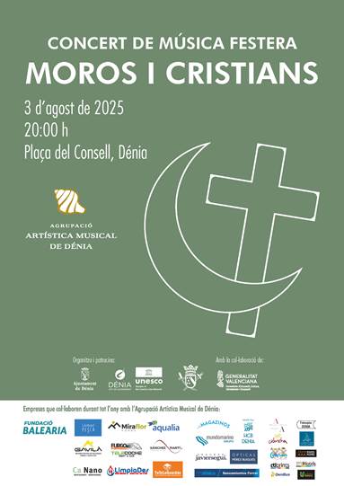 - 20:30 h: Concierto de Música Festera con la colaboración del Director de la Banda de Música de Dénia, Javier Pinto Bañuls en la Plaza del Consell.