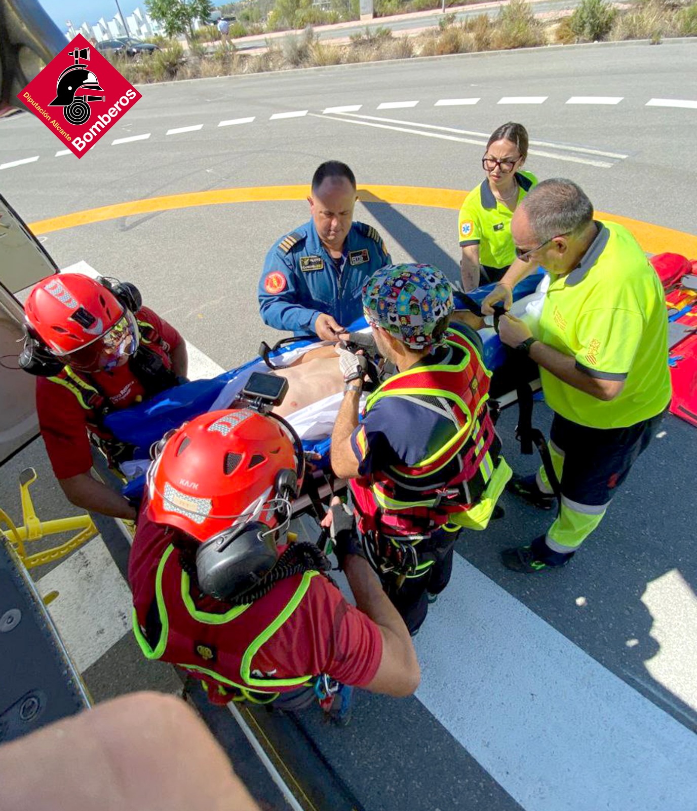 El herido ha sido evacuado en el helicóptero A1 de bomberos hasta la helisuperficie de Finestrat, donde lo esperaba un equipo de Soporte Vital.