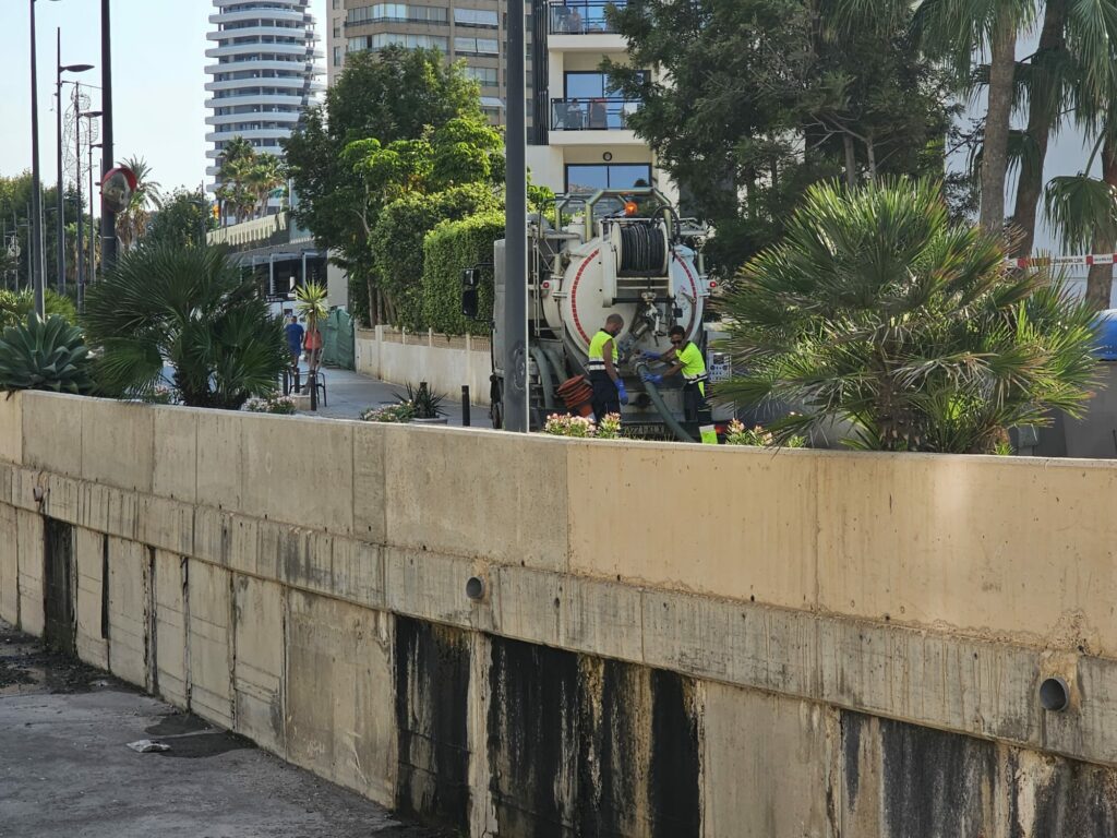Para evitar estas molestias y reducir el riesgo de contaminación en la zona de baño, Aguas de Calpe ha intervenido esta mañana con camiones cuba autoaspirantes a través de una arqueta de registro situada entre los edificios Rio y Costa Blanca. Desde ahí, se han retirado los restos de agua acumulada.