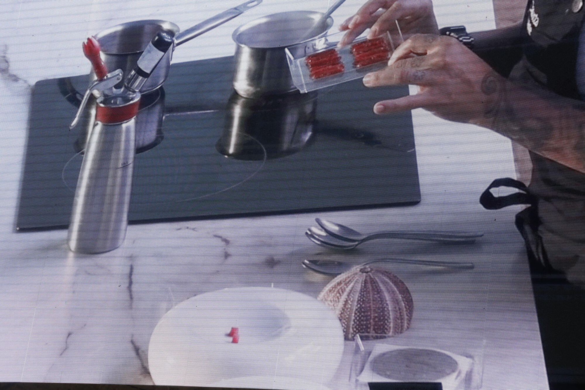 “Busco que los platos perduren en la memoria, con pocos ingredientes y elaboraciones”, explicó mientras cocinaba en directo carabineros, canelones de presa ibérica y una tarta de queso a la plancha de hierro a 300 grados de temperatura, consiguiendo una cocción rápida y respetuosa con los sabores y texturas de los ingredientes. “Hoy cocinamos con sensibilidad, cariño y saber hacer, no con botones”.