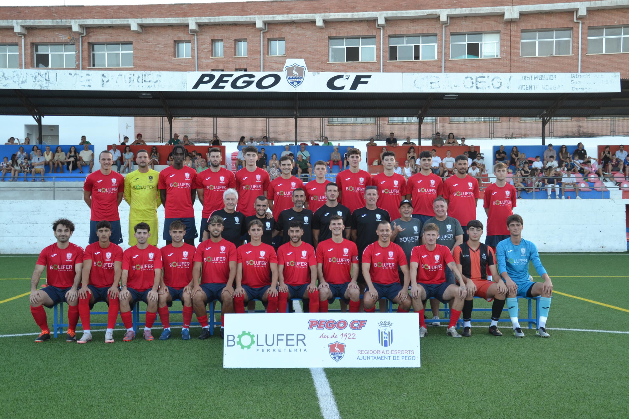 El campo “Cervantes” de Pego fue escenario de un acto lleno de ilusión y emoción: la presentación oficial de la primera plantilla del Pego CF para la temporada 2025-26. Los jugadores fueron saltando uno a uno al centro del campo, recibiendo el calor y los aplausos de una afición entregada. Los últimos en aparecer fueron los capitanes Arnau y Kevin, que junto al cuerpo técnico, encabezado por el entrenador Javi Signes, completaron la foto oficial del equipo.