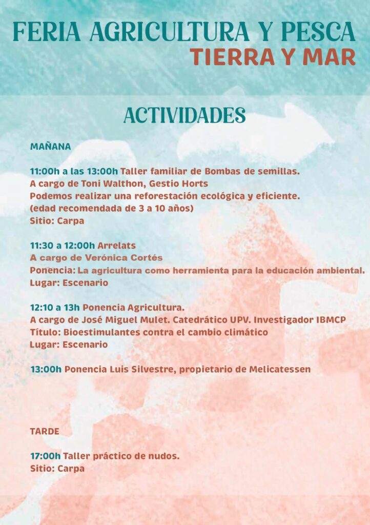 La programación de la feria Terra i Mar, que se desarrollará entre las 10 y las 20 horas, se completa con talleres participativos para aprender a hacer, por ejemplo, ‘bombas’ de semillas (de 11 a 13 h) o nudos marineros (17 h).