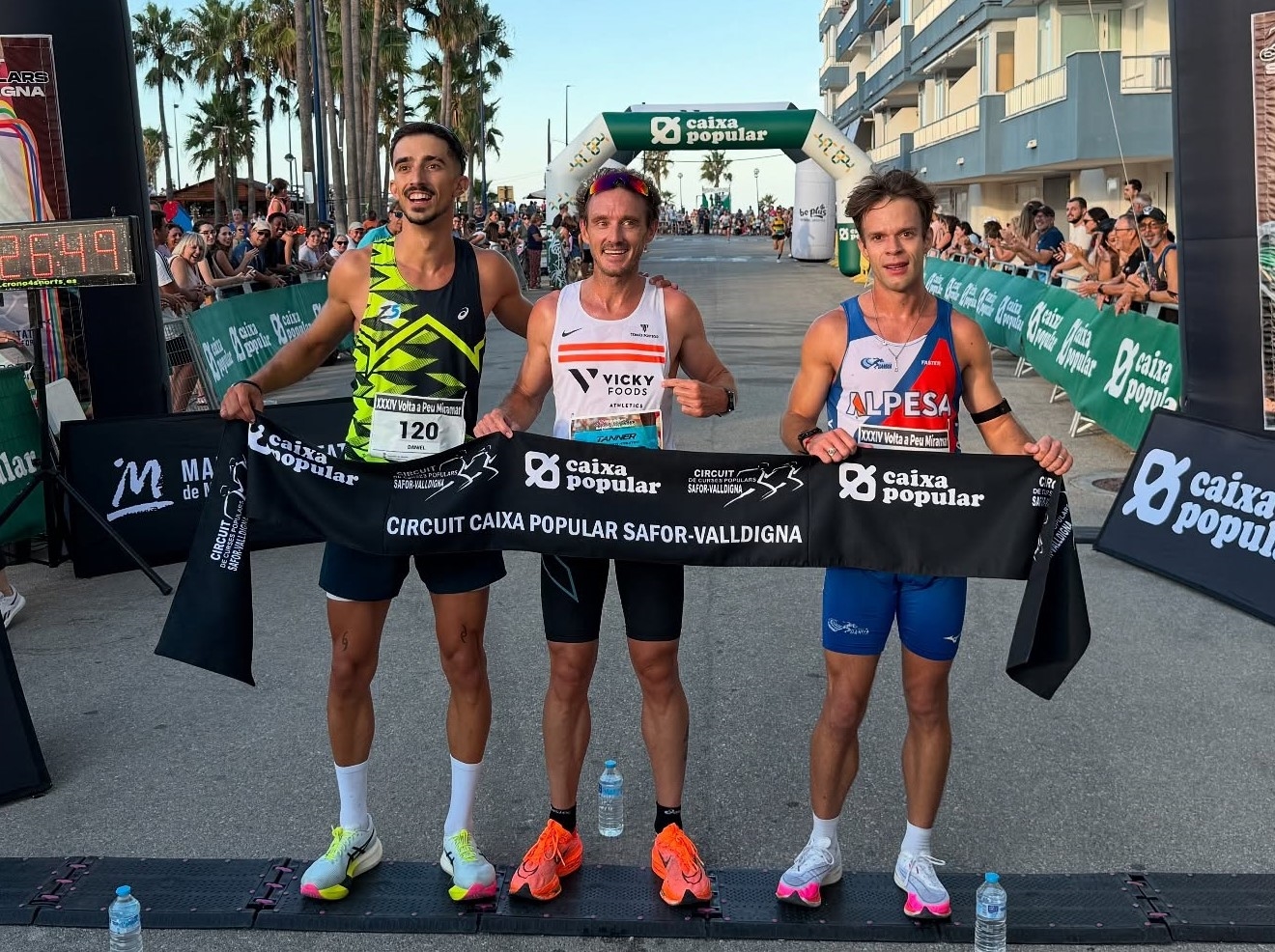 En la categoría masculina, el vencedor fue Mark Tanner, quien cruzó la línea de meta con un tiempo de 25 minutos y 47 segundos. Tanner, afincado en Xàbia, mantuvo un interesante duelo con Daniel Jares, quien terminó en segunda posición con 25 minutos y 52 segundos. El podio masculino lo completó el atleta de Benissa, Kike Roselló, quien logró un tiempo de 25 minutos y 56 segundos, demostrando un gran nivel de competencia.