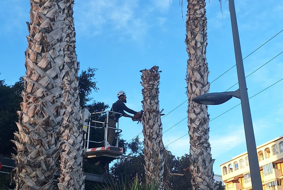 Por otro lado, hace unos días las brigadas municipales de Jardinería realizaron trabajos de poda en un grupo de palmeras ubicados en la intersección de la calle La Niña y la avenida Ejércitos Españoles ya que la copa de las palmeras colisionaba con una línea de alta tensión.