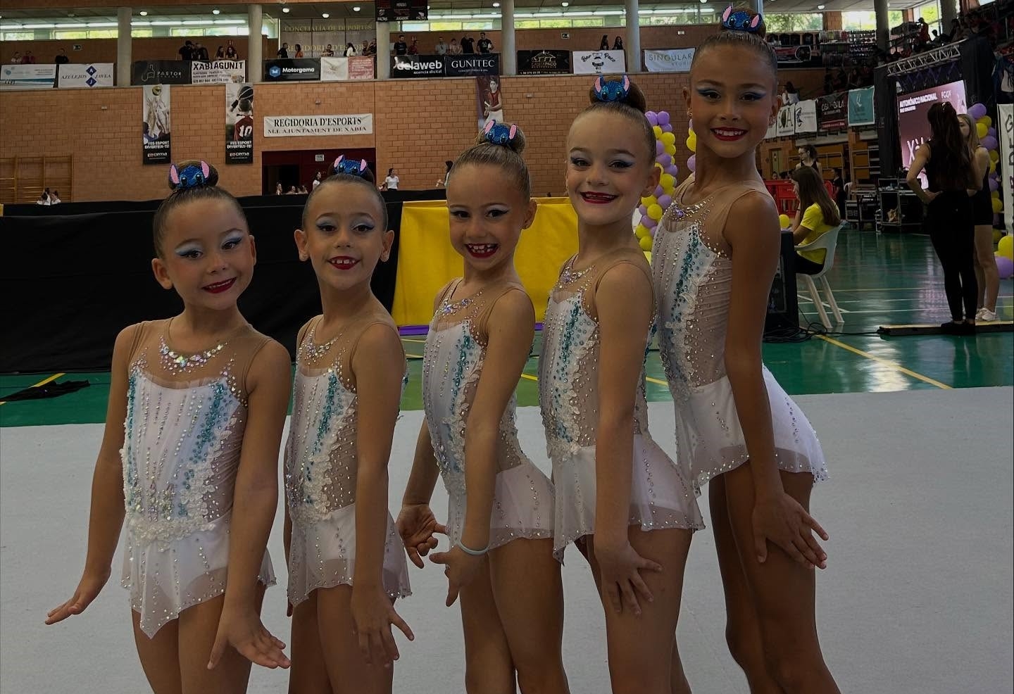 El pabellón Miguel Buigues de Xàbia acogió este fin de semana el Campeonato Autonómico Nacional Base de Conjuntos, una cita clave para los equipos de gimnasia rítmica de la Comunidad Valenciana, en la que el Club Gimnàstica Dénia participó con dos de sus conjuntos.