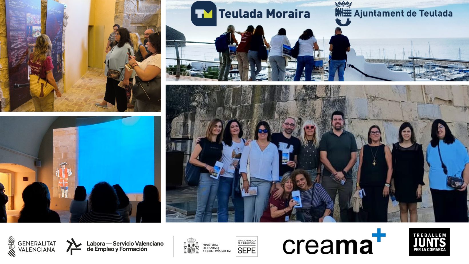 Este viernes, 24 de octubre, tuvo lugar la presentación de una nueva ruta guiada en Teulada Moraira, desarrollada por el alumnado del Taller de Empleo Marina Alta XIV de CREAMA. Al acto asistieron Pilar Vidal Oller, delegada de CREAMA y concejala de Fomento, Empleo, Comercio y PYMES, junto a Verónica Martínez Linares, concejala de Turismo, y Gemma García Vidal, ADL de Teulada Moraira.