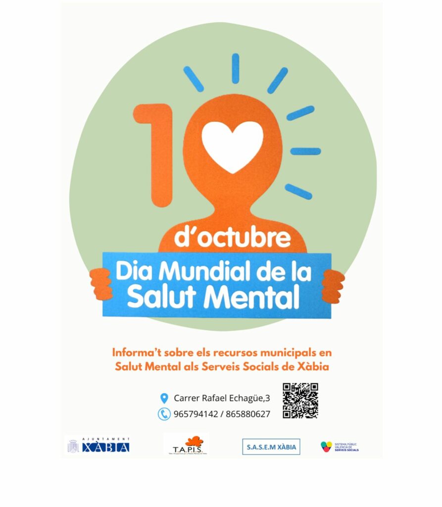El Ayuntamiento de Xàbia ha puesto en marcha una completa programación para conmemorar el Día Mundial de la Salud Mental, que se celebra cada 10 de octubre. A través de los programas municipales TAPIS Xàbia y SASEM (Servicio de Acompañamiento y Soporte para la Salud Mental), el municipio vuelve a sumarse a esta cita internacional con el objetivo de promover la inclusión, fomentar la empatía y concienciar sobre la importancia del cuidado psicológico.