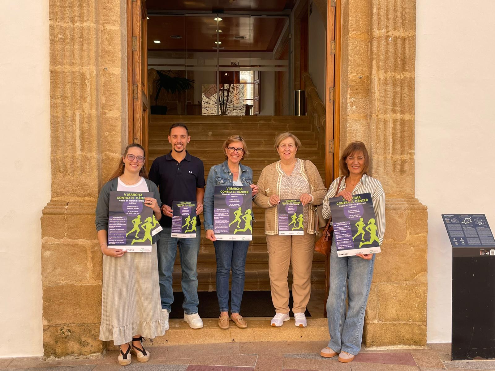 Durante la presentación, la presidenta de la Junta Local de la Asociación Española Contra el Cáncer de Xàbia, Carmen Hernández, junto a la vocal, Isabel Méndez; y los ediles Raquel Violero (edil de Servicios Sociales) y Toni Molina (concejal de Deportes), han subrayado el valor de la solidaridad en esta causa.