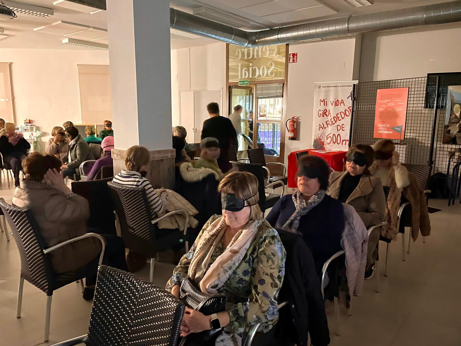 A las 18.00 horas, el Centro Social acogió el impactante espectáculo teatral ‘Mi vida gira alrededor… de 500 metros’, una propuesta sensorial que invitó al público a reflexionar sobre las diversas formas de violencia machista. Las personas asistentes participaron con los ojos tapados, lo que les permitió sumergirse emocionalmente en las escenas que se recreaban a su alrededor y tomar conciencia, de manera más directa, del miedo, la angustia y la vulnerabilidad que sufren muchas mujeres en su día a día.