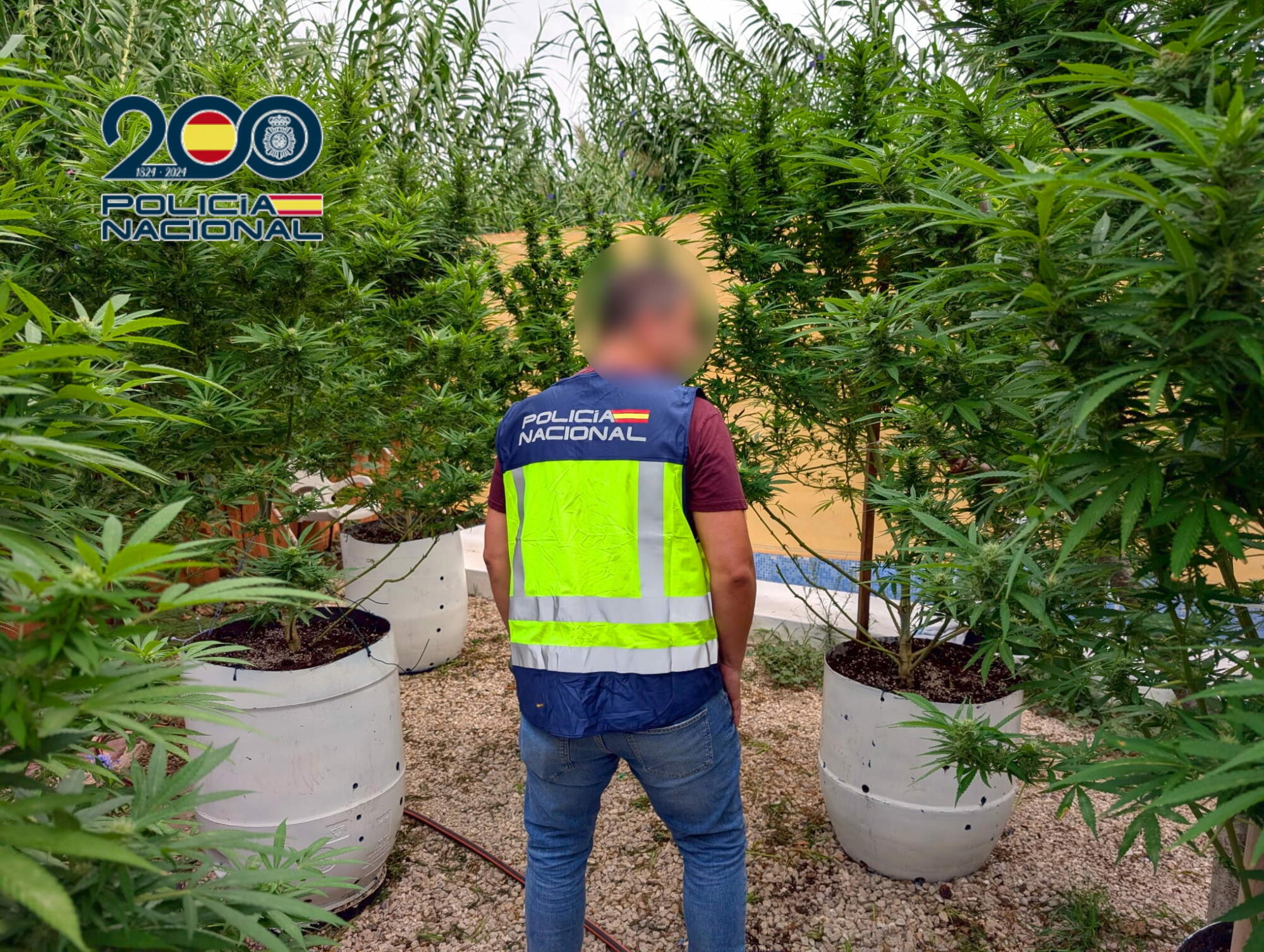 Con esa información, se solicitó un mandamiento judicial de entrada y registro a los juzgados de Denia. Una vez autorizado, los agentes —con apoyo de la Policía Local de Ondara— accedieron al inmueble y localizaron en el exterior 19 plantas cuya altura hacía que “parecieran árboles”, además de estar parcialmente cubiertas con toldos para evitar su detección desde el exterior.