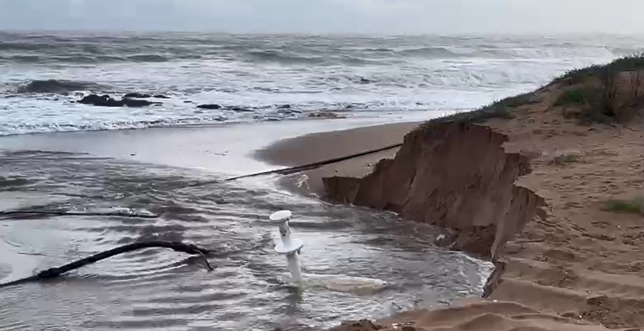 En algunos tramos, como puede visualizarse en el vídeo, la línea de orilla ha retrocedido, dejando incluso al descubierto el lavapiés y su cableado.