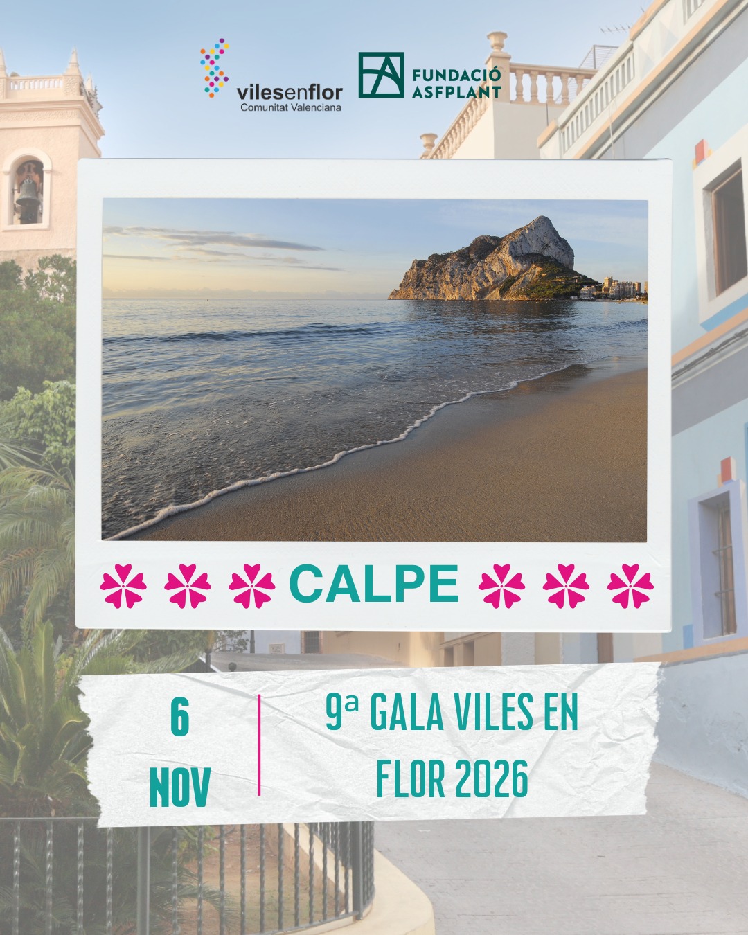 El Ayuntamiento de Calp será el anfitrión de la IX edición de la gala de entrega de los galardones “Flors d’Honor” del programa “Viles en Flor”, impulsado por la Fundación Asfplant (Asociación Profesional de Flores, Plantas y Tecnología Hortícola de la Comunidad Valenciana).