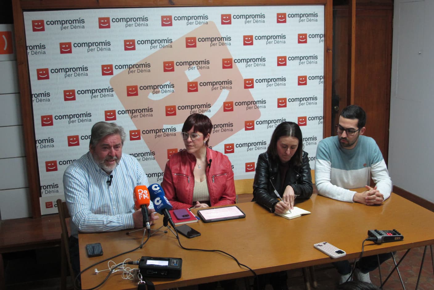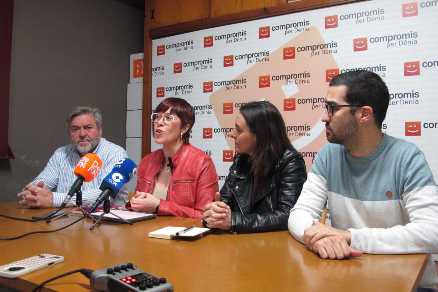 La diputada de Compromís en el Congreso, Àgueda Micó ha presentado las enmiendas que la coalición ha registrado a la Ley de Costas, en tramitación parlamentaria, en la sede de Compromís per Dénia, arropada por los tres ediles en el equipo de gobierno del Ayuntamiento dianense, Rafa Carrió, Maria José García y Valen Alcalà.