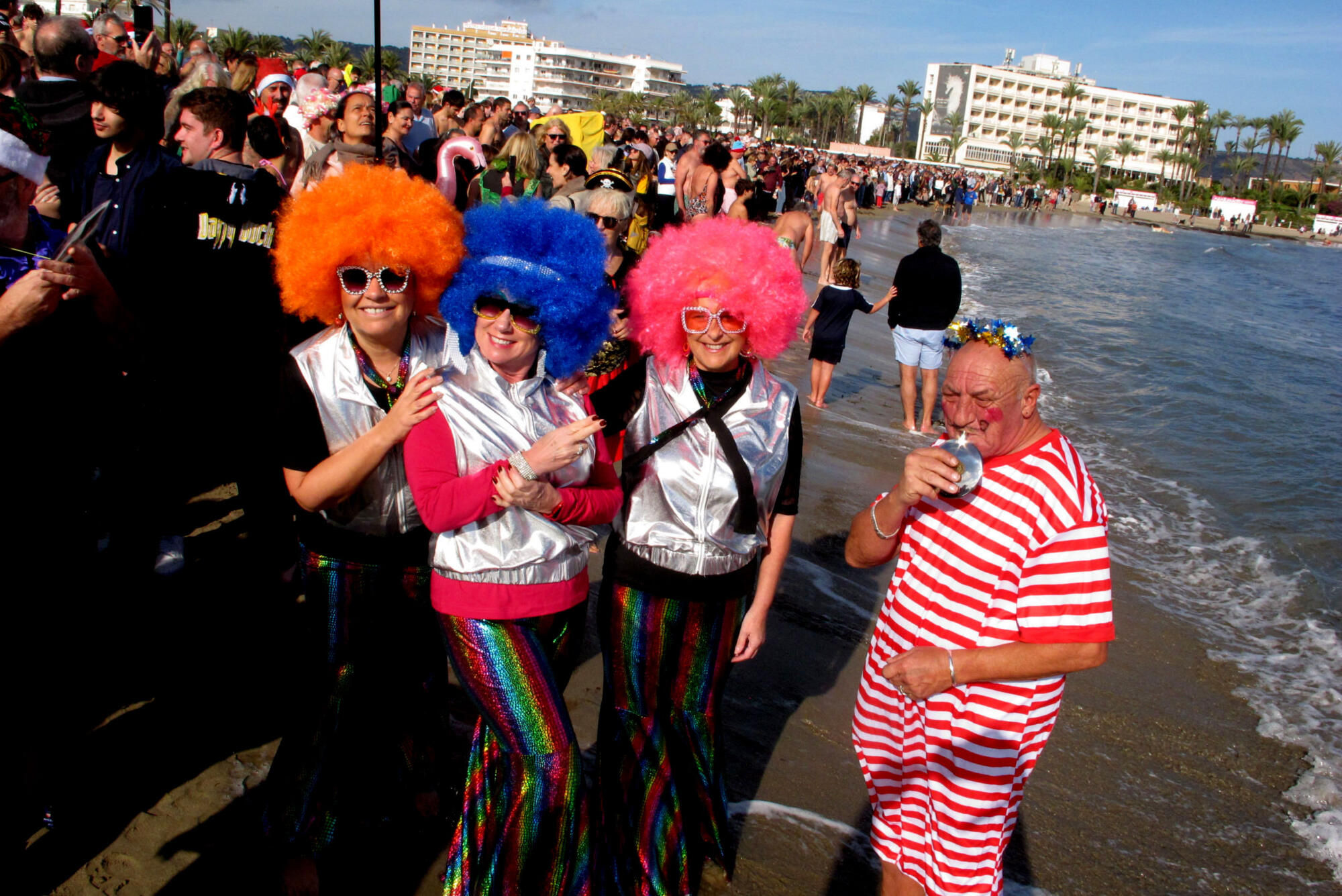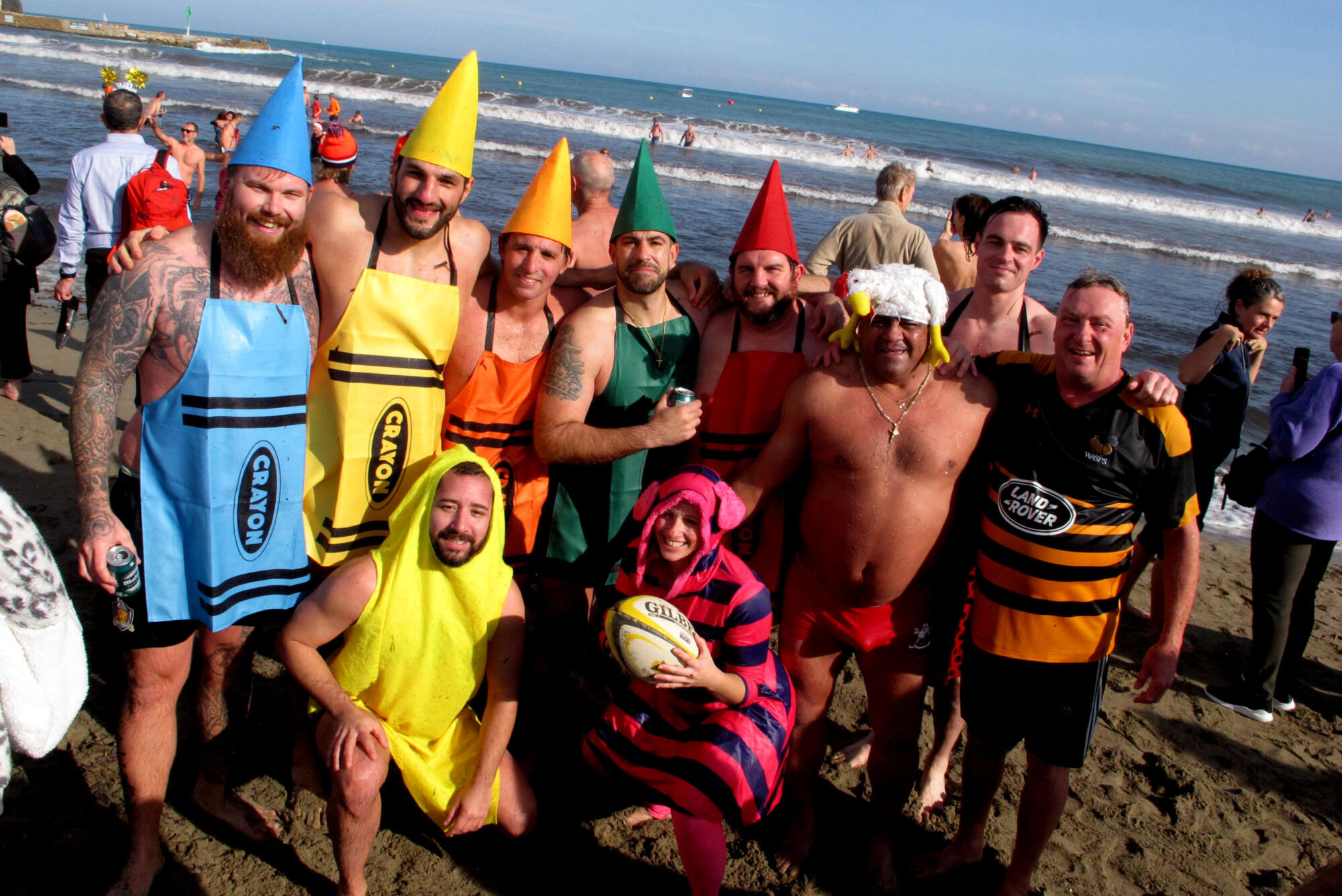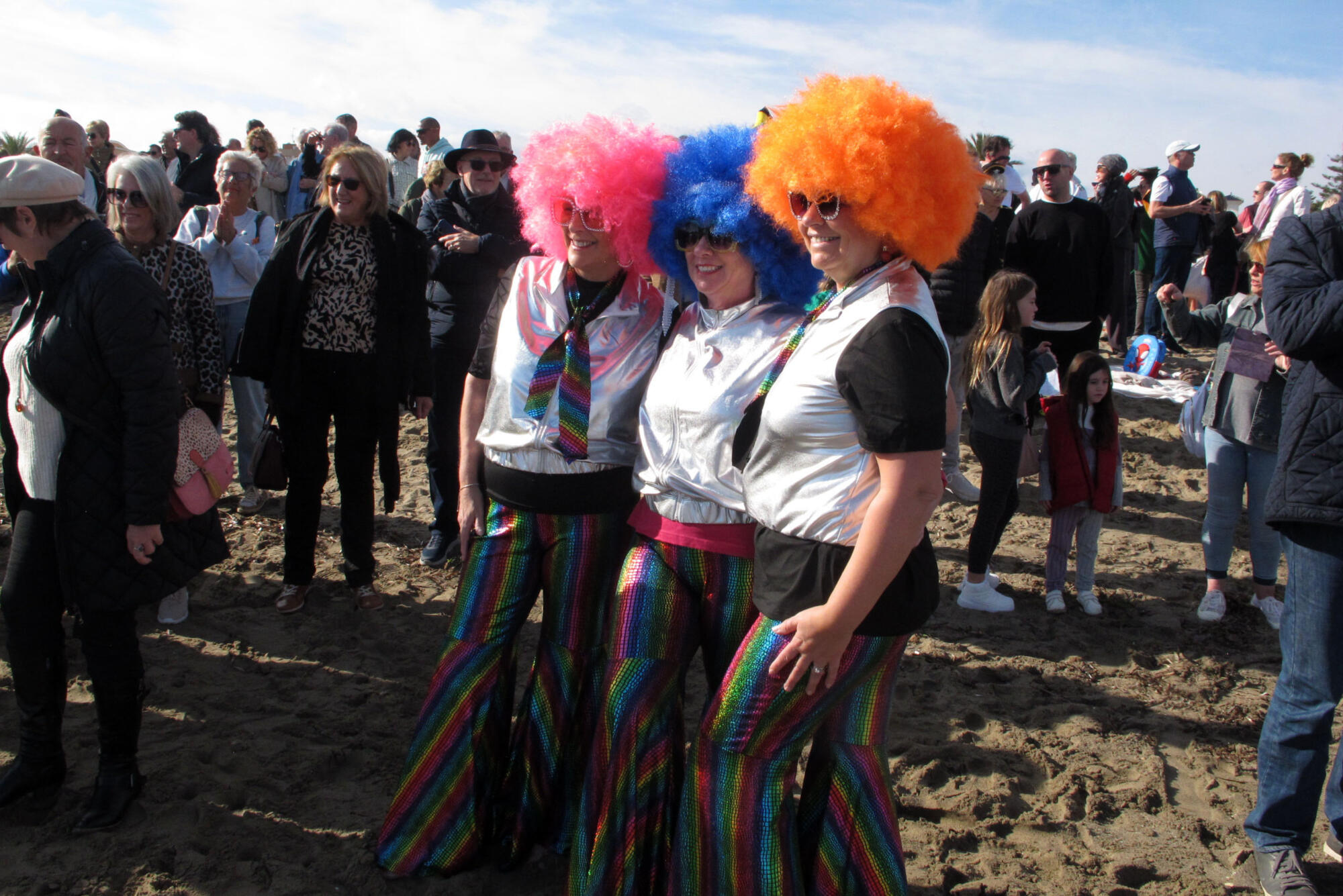 Los osados respondieron así, ataviados con sus mejores disfraces, a la convocatoria, un año más, del Baño Benéfico de Año Nuevo, organizado por el bar Lancashire Bruja, lanzándose al agua sobre las 13 horas, y aguantando dentro unos diez minutos.
