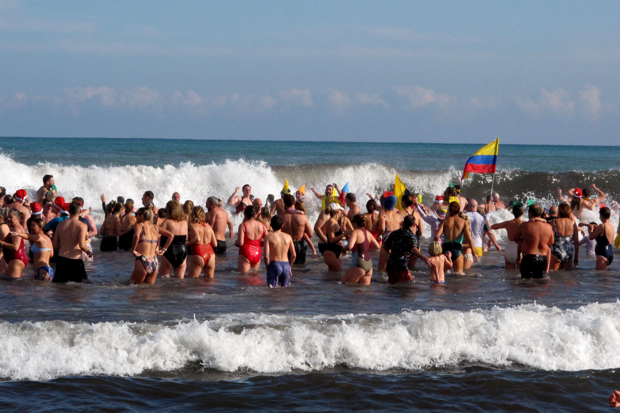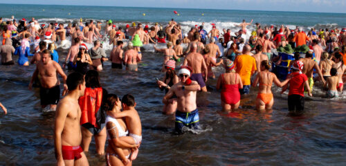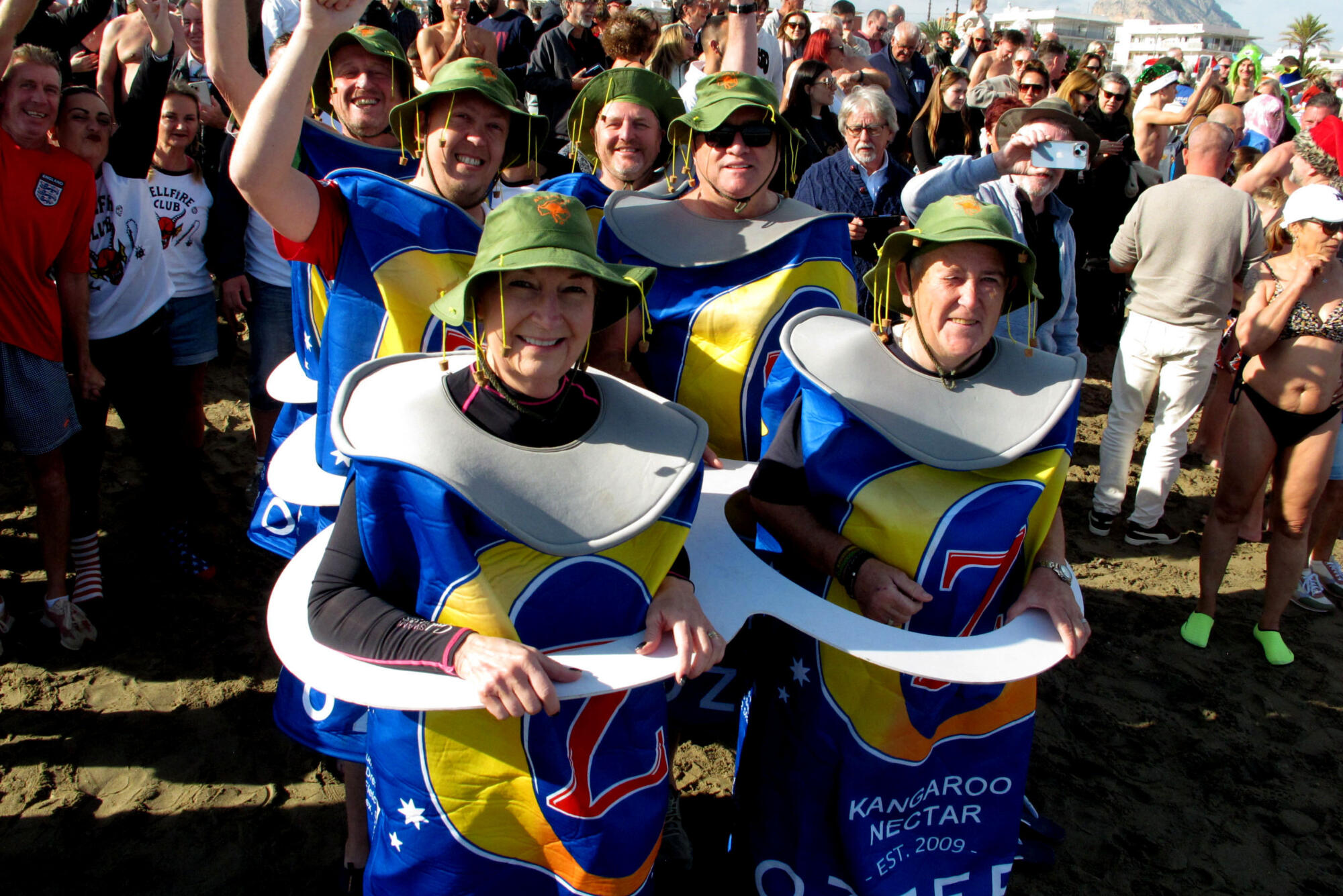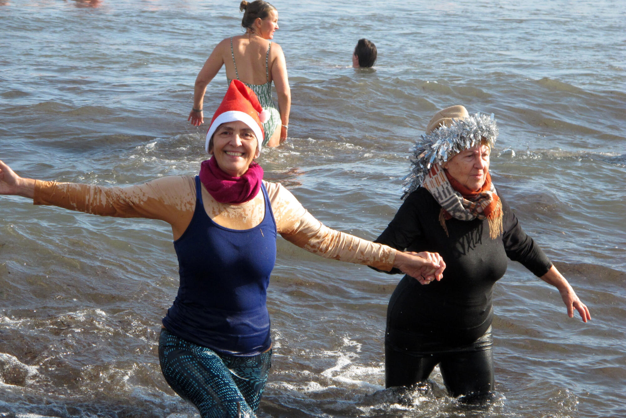 Los osados respondieron así, ataviados con sus mejores disfraces, a la convocatoria, un año más, del Baño Benéfico de Año Nuevo, organizado por el bar Lancashire Bruja, lanzándose al agua sobre las 13 horas, y aguantando dentro unos diez minutos.