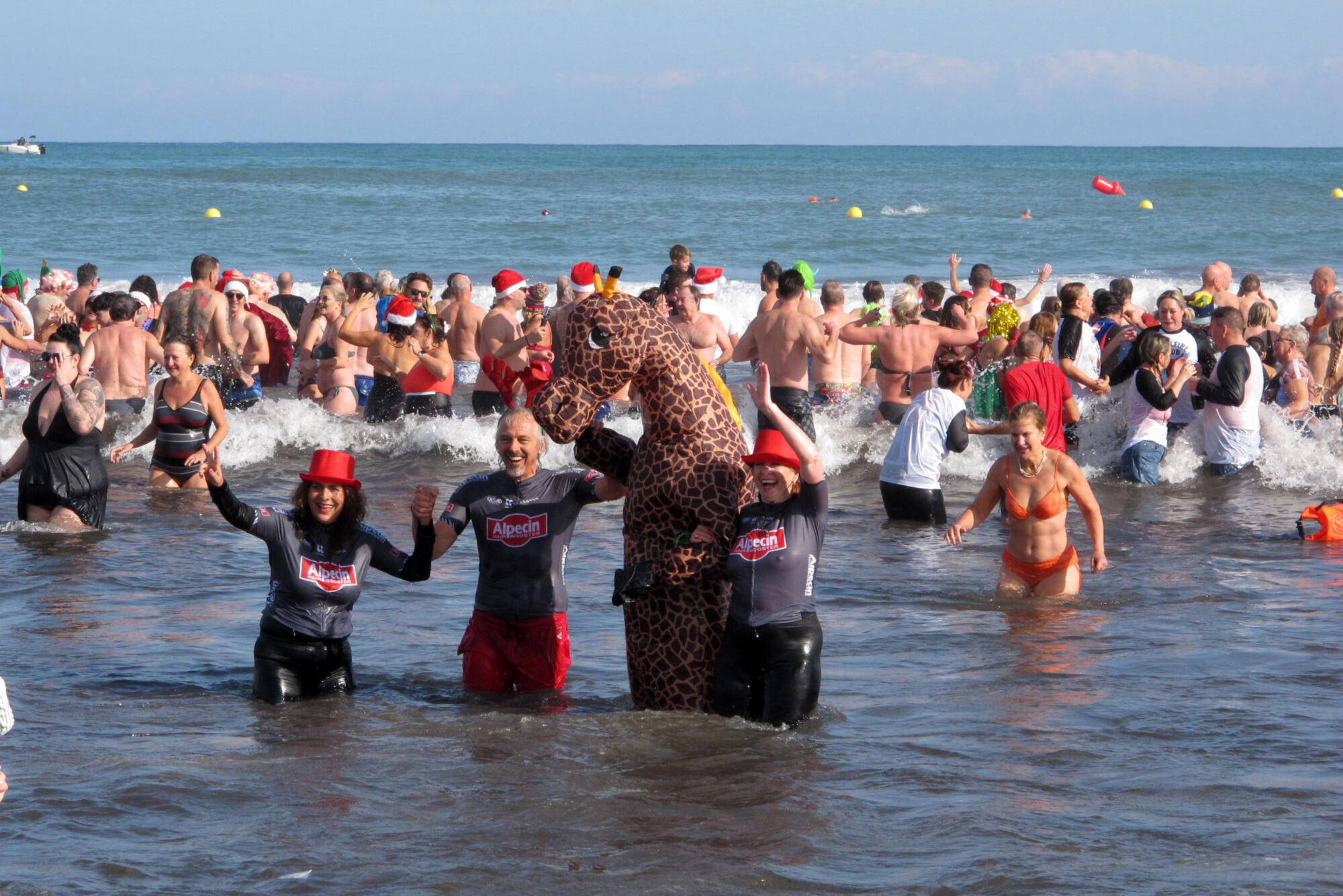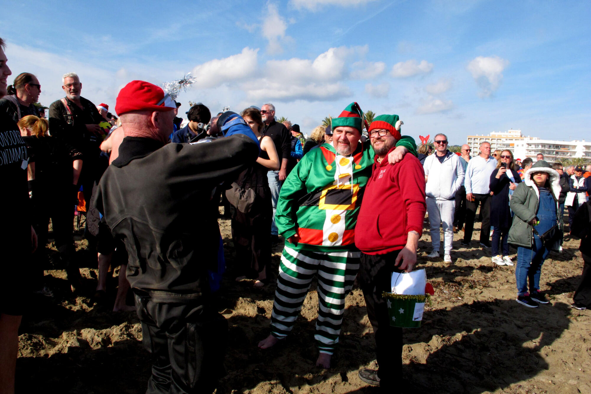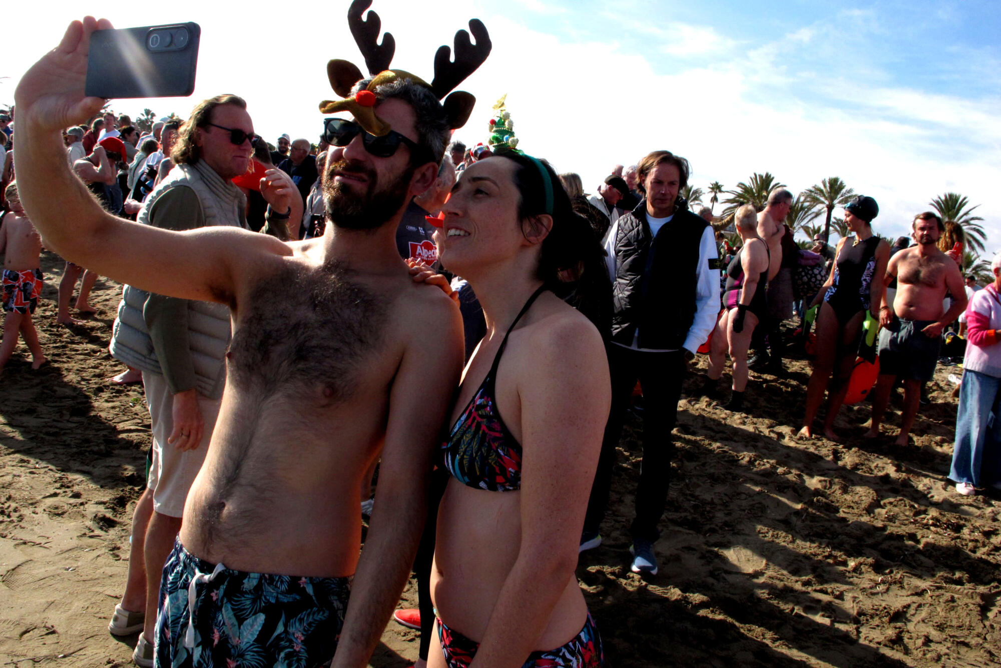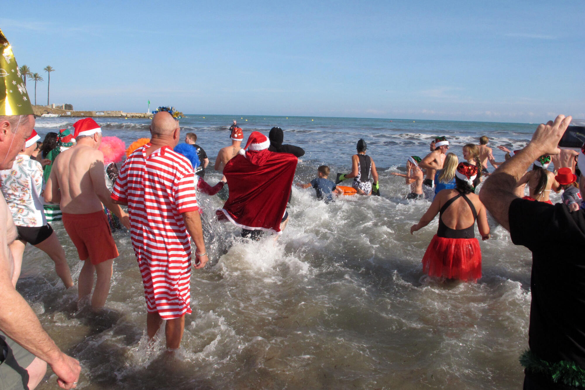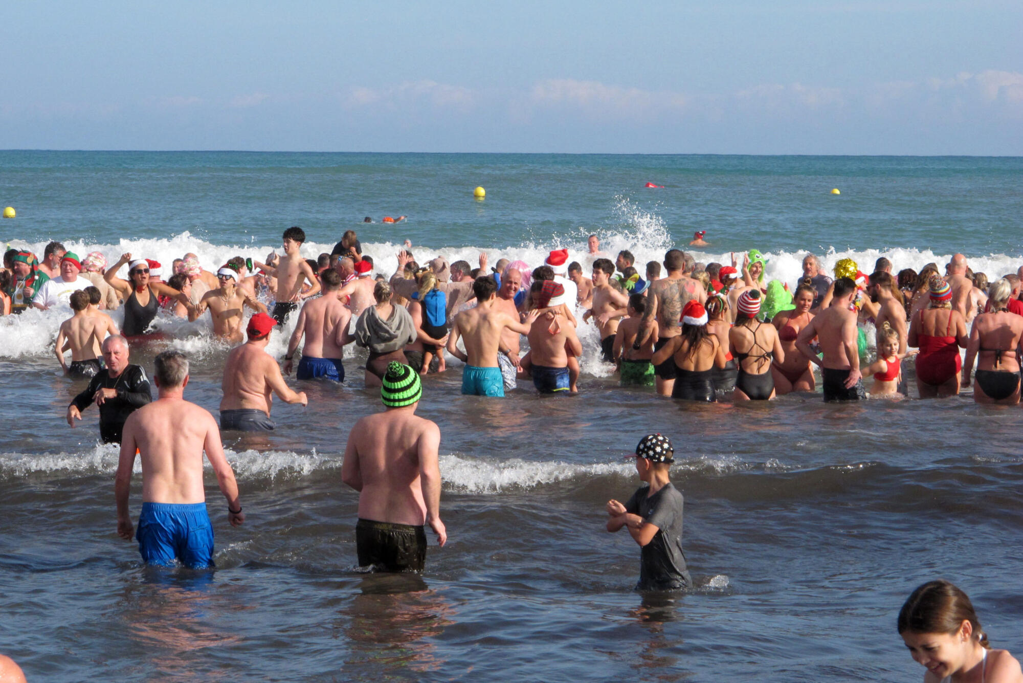 Fieles a la tradicional cita de nuevo año, unas 200 personas se zambulleron en las aguas de la playa de El Arenal en Xàbia, el jueves 1 de enero de 2026.