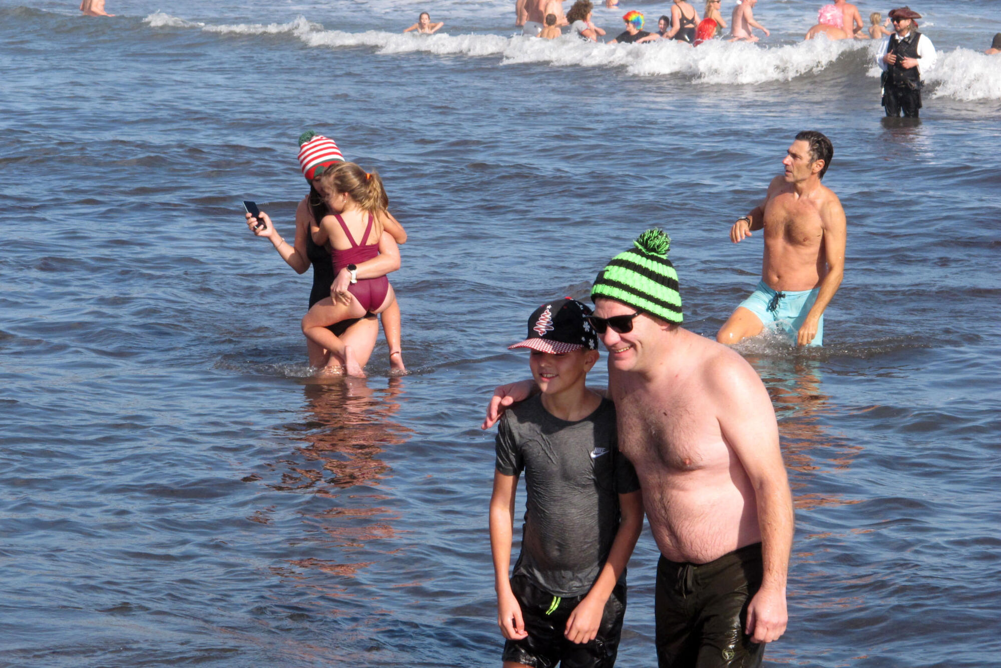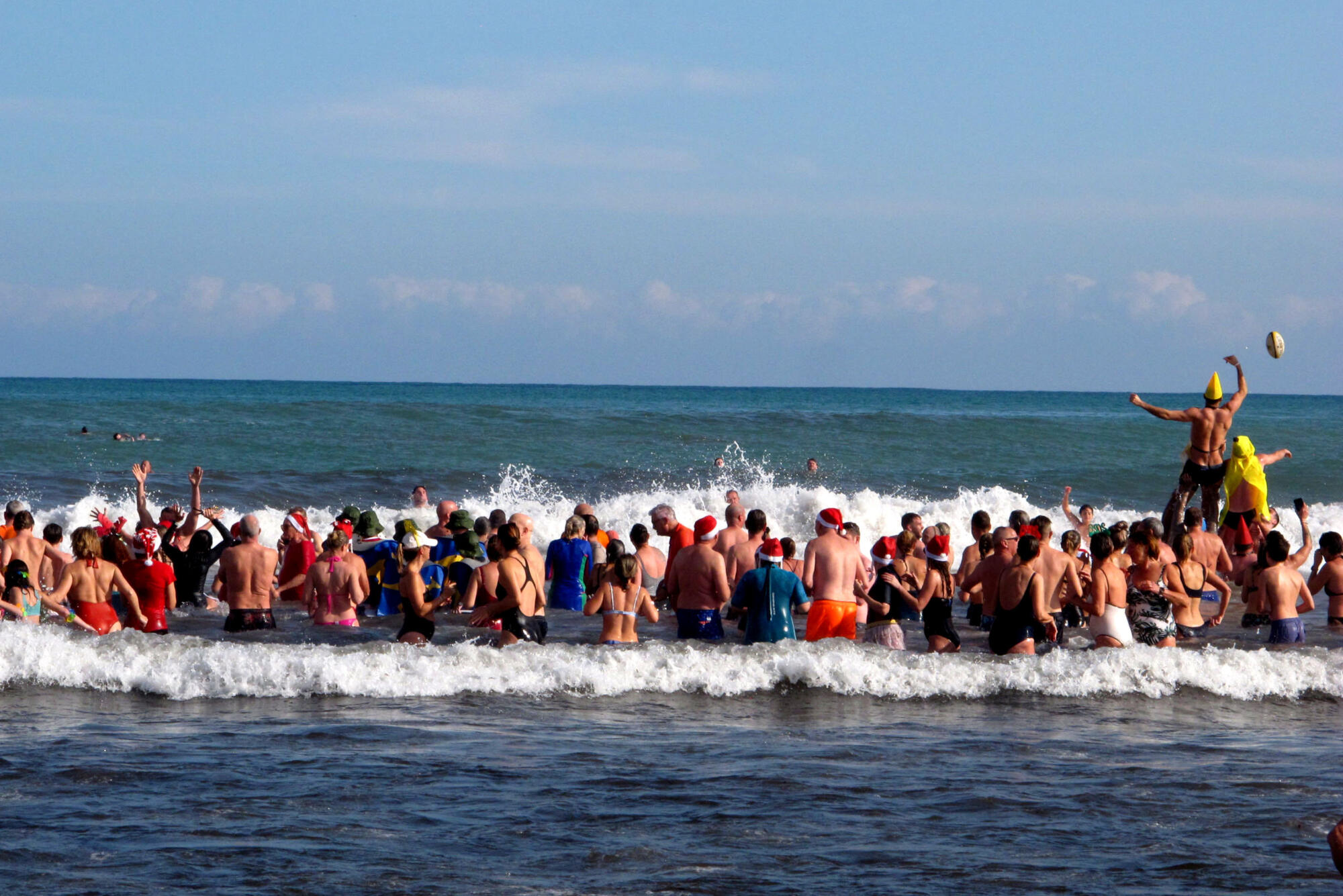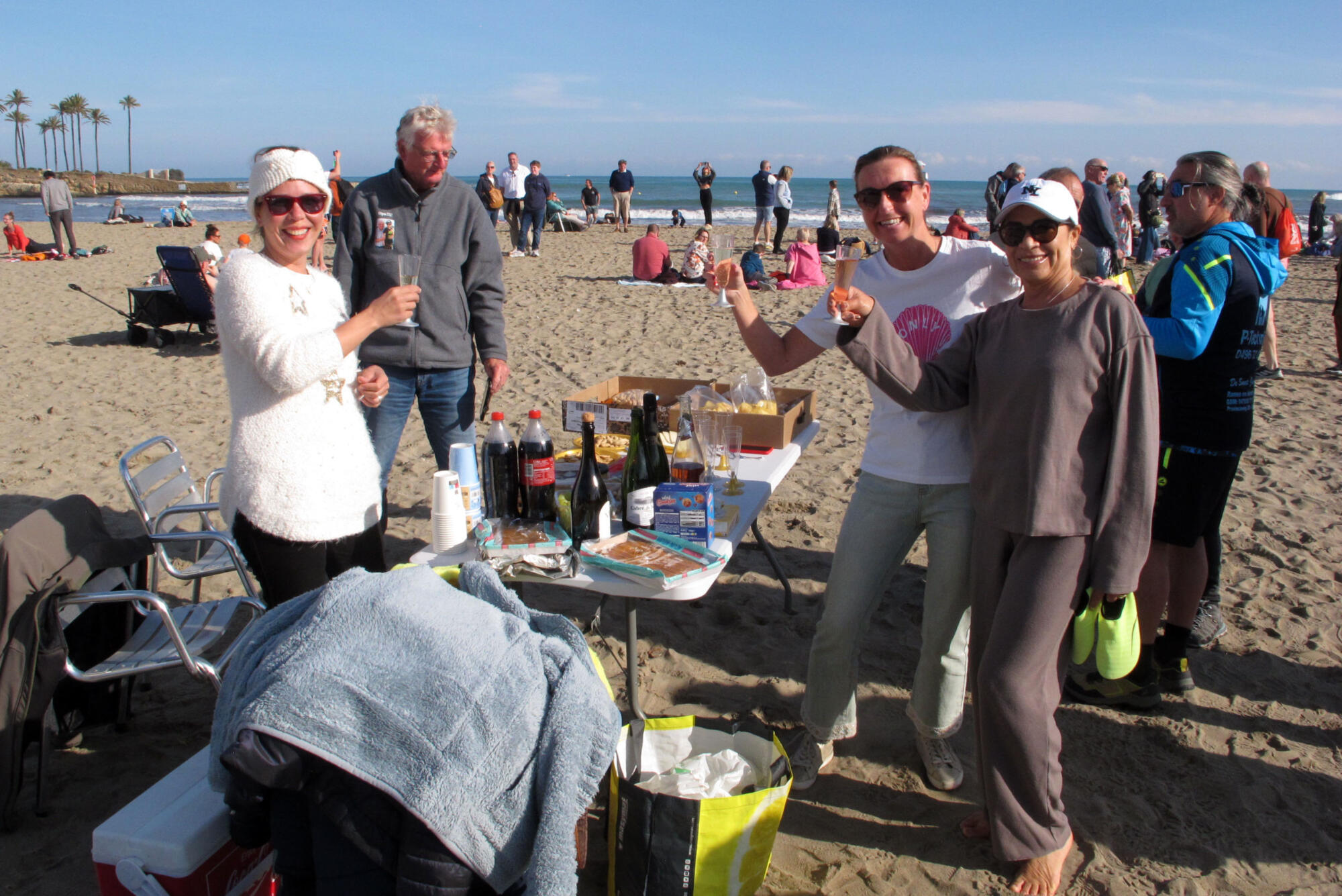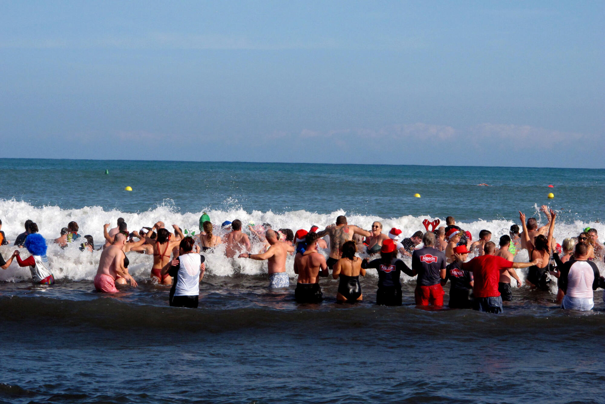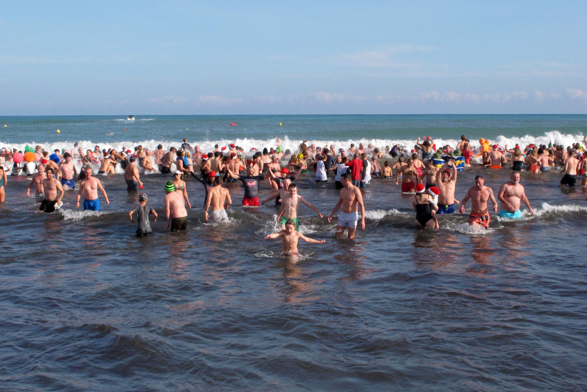 Fieles a la tradicional cita de nuevo año, unas 200 personas se zambulleron en las aguas de la playa de El Arenal en Xàbia, el jueves 1 de enero de 2026.