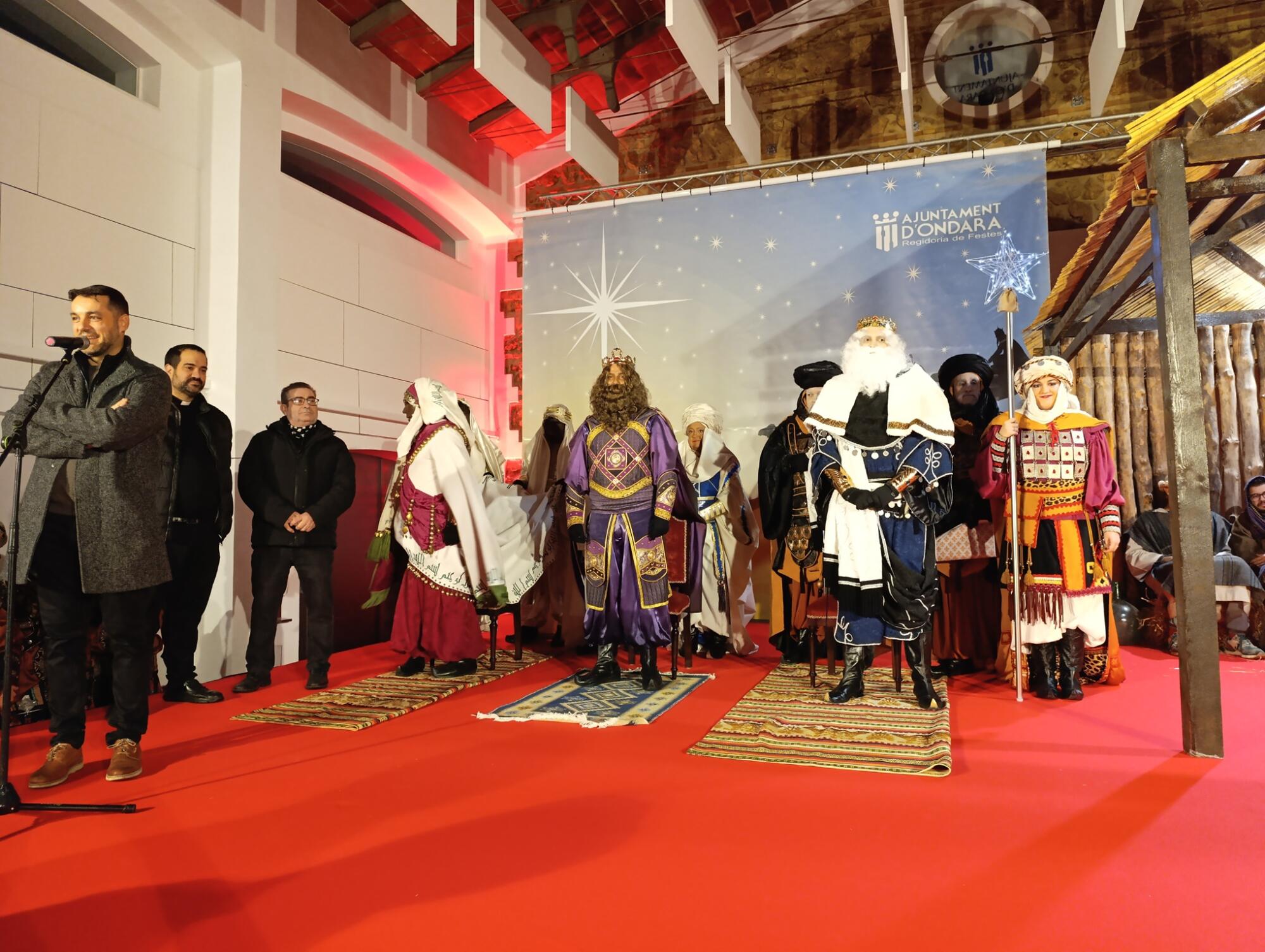 A las 18:30 horas, Melchor, Gaspar y Baltasar hicieron su solemne entrada, acompañados por emisarios, bailes y la comitiva real. Los Reyes realizaron la adoración al Niño Jesús y dirigieron unas palabras llenas de magia a todos los niños y niñas de Ondara: “Fue un momento muy especial para todos los pequeños, lleno de ilusión”.