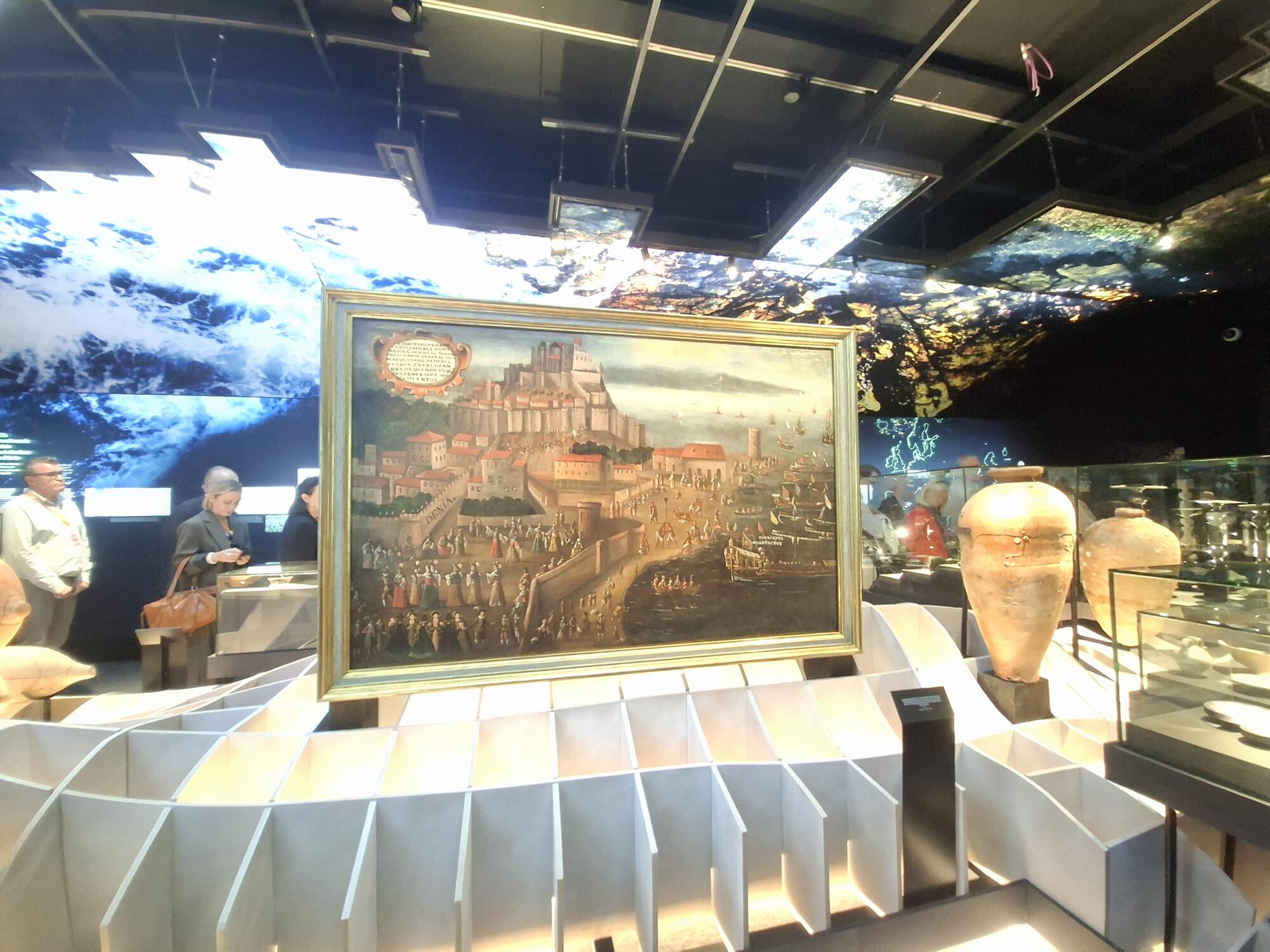 La exposición ‘Dénia, Arqueología y Museo’ ofrece un recorrido desde las primeras manifestaciones de arte rupestre de la cueva de la Catxupa hasta yacimientos tan emblemáticos como Alt de Benimaquia, uno de los centros vitivinícolas más antiguos de la Península. También aborda la fundación de la ciudad romana de Dianium, transformada en madīna Dāniya, y su importancia como puerto destacado en la Mediterránea islámica, para finalmente adentrarse en la Dénia contemporánea. La exposición propone una presentación innovadora y visualmente impactante, destacando la dualidad mar y tierra, que da sentido a la historia de Dénia y su territorio.