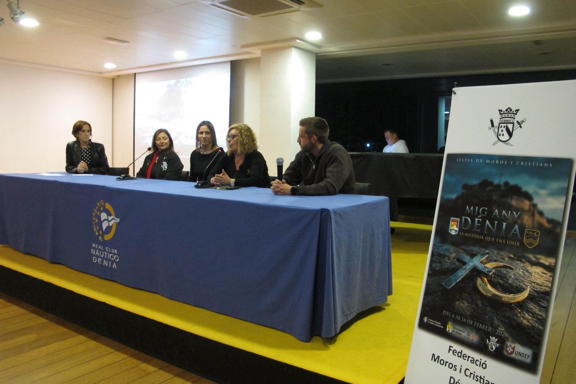 El miércoles 11 de febrero de 2026, el Real Club Náutico de Dénia fue escenario de una enriquecedora charla-coloquio titulada “Género y poder en las fiestas de Moros y Cristianos”, organizada por la Federación de Moros y Cristianos de Dénia (FEMMICC) como parte de la programación del Mig Any 2026.