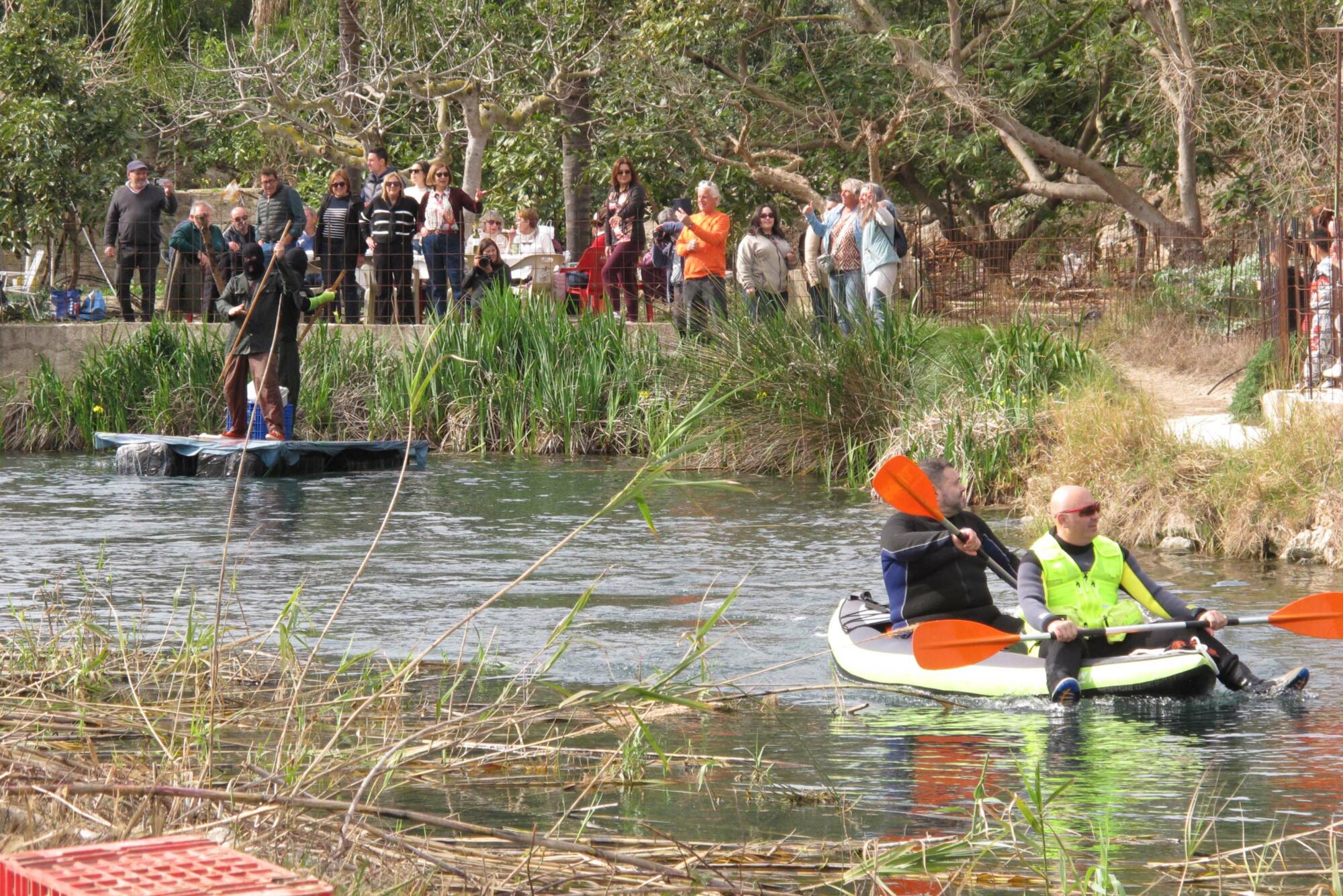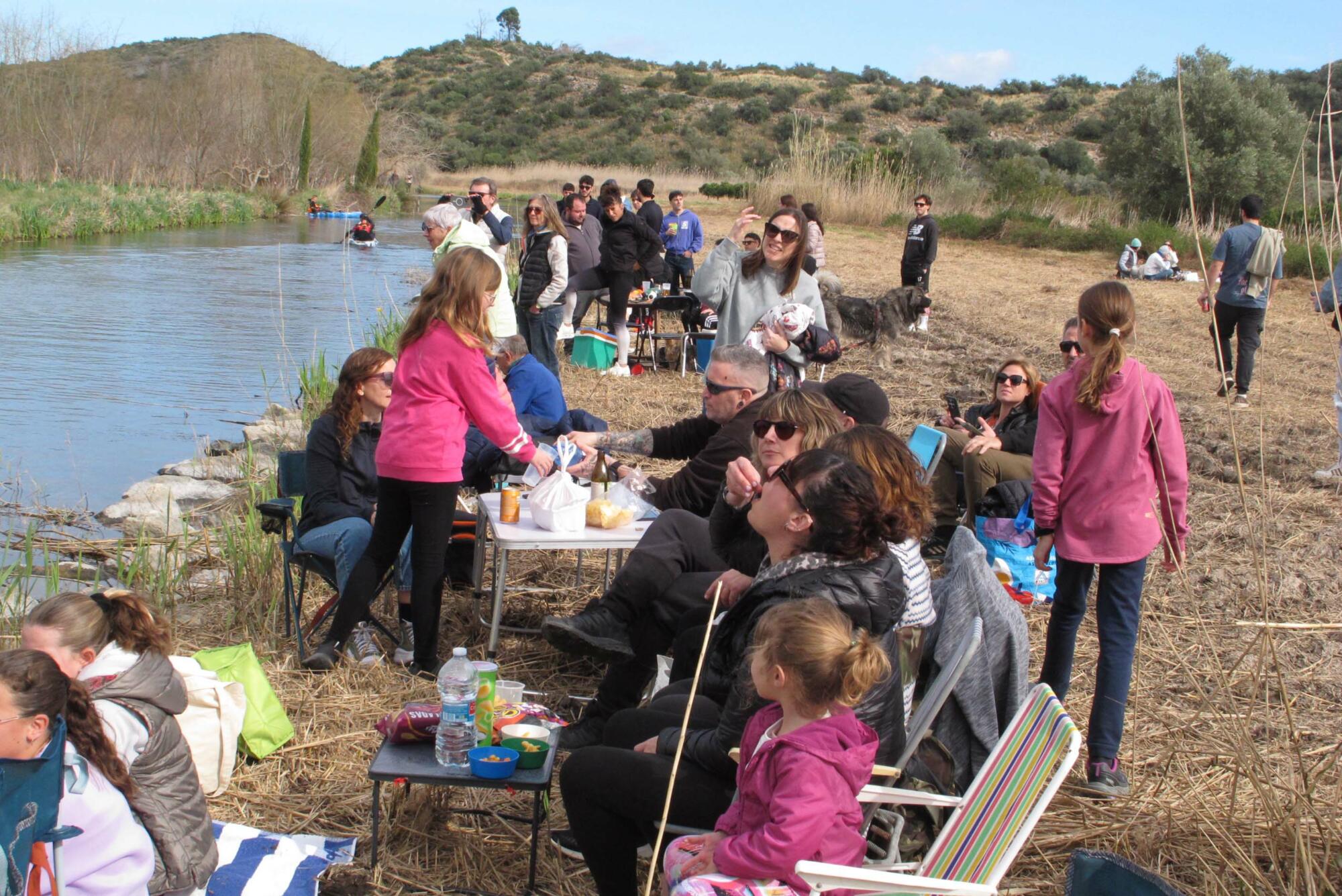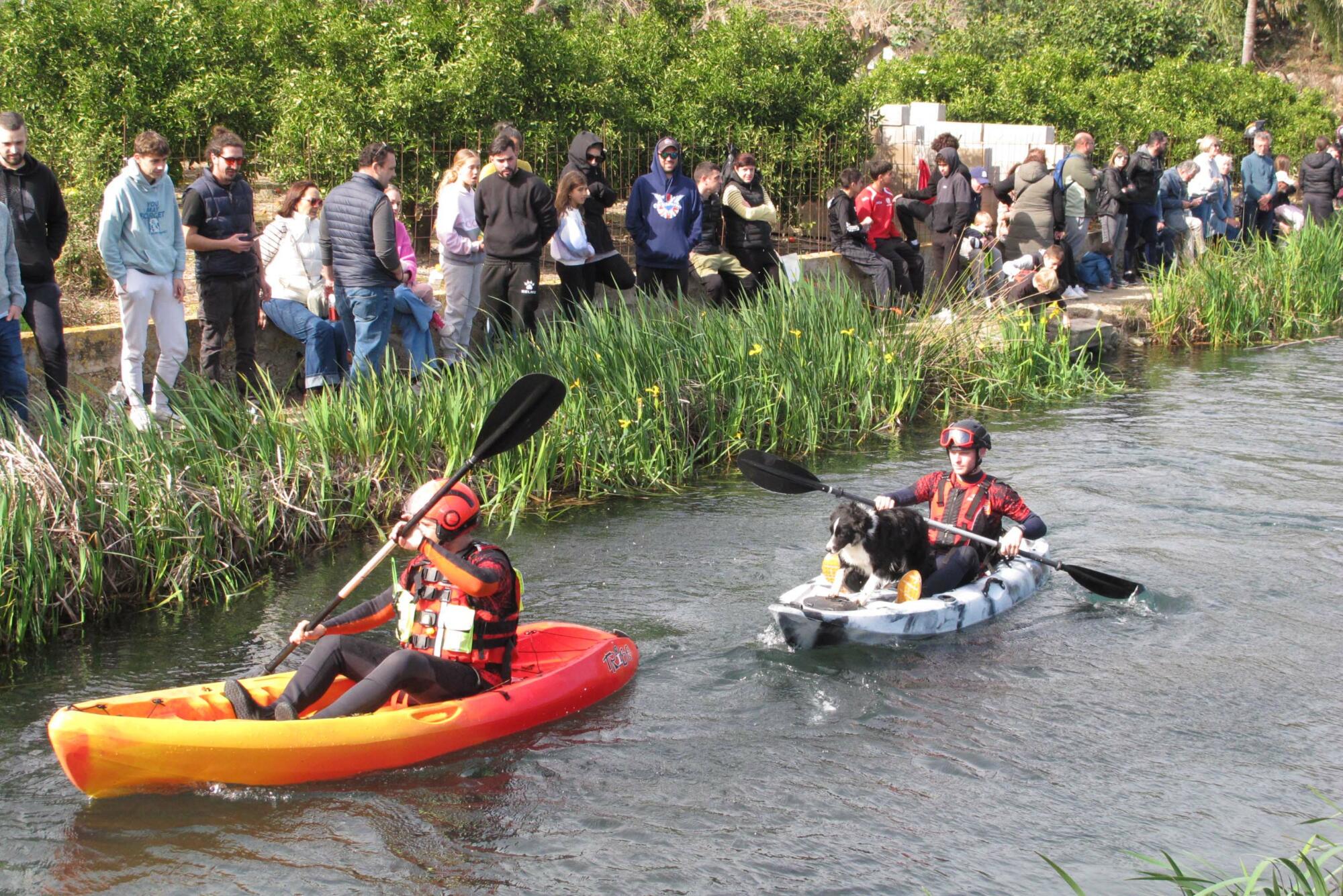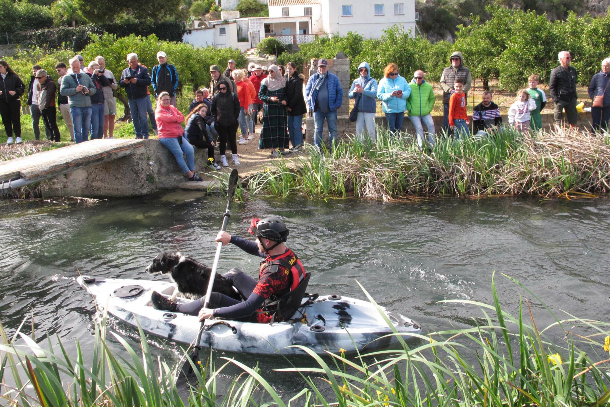 Una atípica carrera de embarcaciones caseras que «surcan» las aguas del río Bullent, por el paraje de la Marjal de Pego-Oliva, ante la atenta y divertida mirada del público que se congrega alrededor.