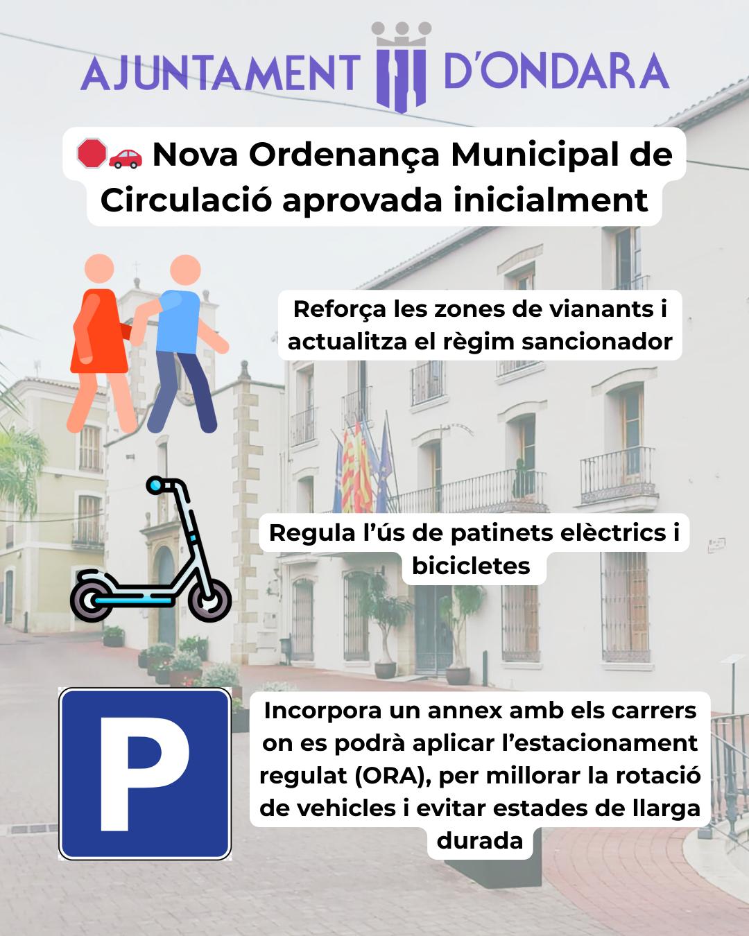 El pleno del Ayuntamiento de Ondara aprobó, inicialmente, la nueva Ordenanza Municipal de Circulación, un documento que renueva de manera integral la normativa local en materia de movilidad, estacionamiento y convivencia vial. La propuesta prosperó con los votos favorables del PSPV-PSOE, el voto en contra del PP y la abstención de Compromís.