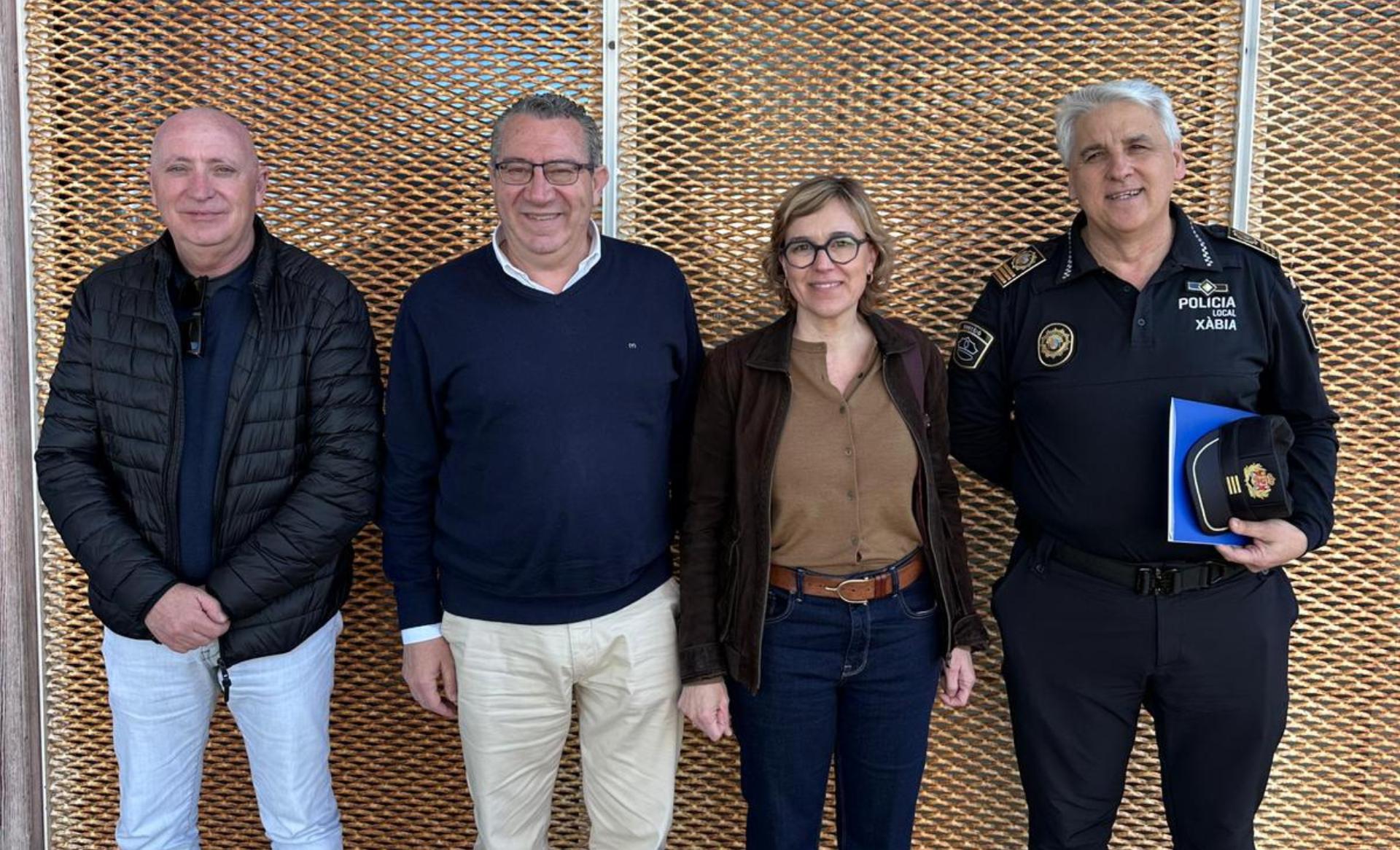 La alcaldesa de Xàbia, Rosa Cardona, junto con el concejal de Emergencias, Juan Ortolà, y el jefe de la Policía Local, José Antonio Monfort, se reunieron con el presidente de la Diputación de Alicante, Toni Pérez para discutir la ampliación del servicio del retén de bomberos en el municipio.