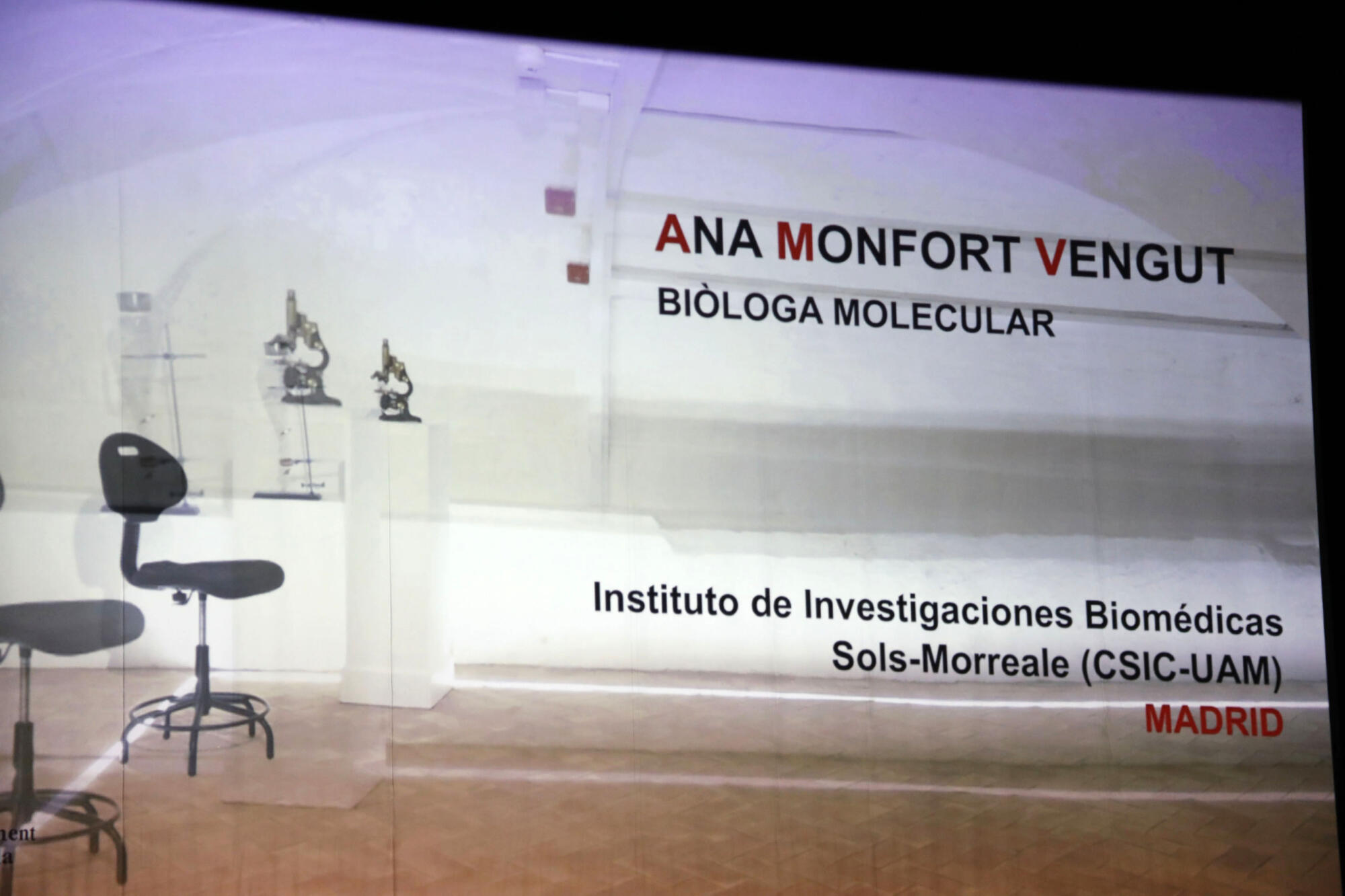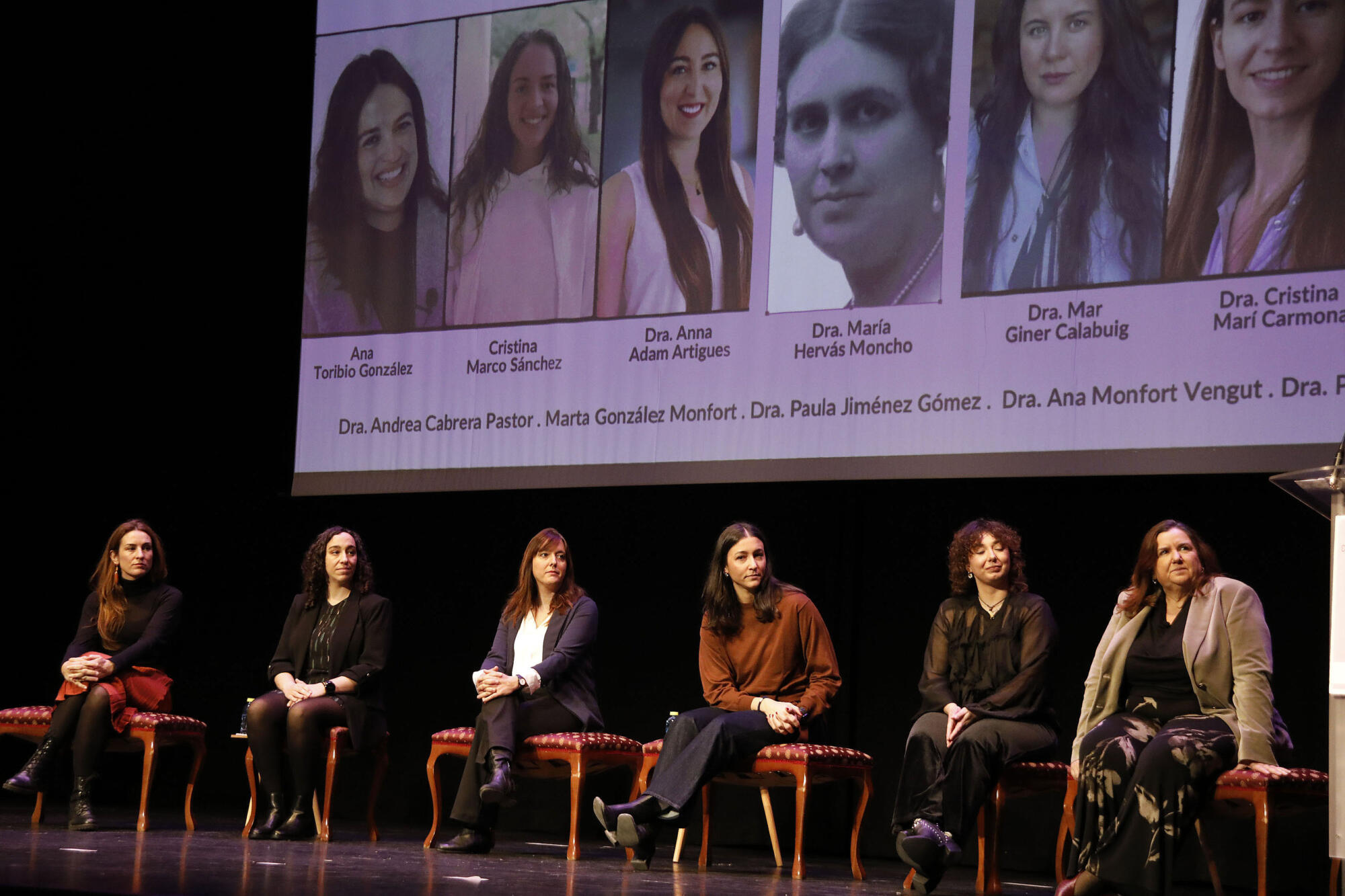 El acto comenzaba con la proyección de unos audiovisuales en los que se explicaba, en primer lugar, la trayectoria de María Hervás, la primera mujer en aparecer en una orla de Medicina, y la tercera mujer de España en estudiar Medicina; becada en la Sorbona de París, conoció también a Marie Curie. Y después, cada una de las científicas dianenses explicaban su campo de estudio y trabajo; además de otros aspectos, como la figura de la mujer en la ciencia, la maternidad y conciliación laboral y familiar; o la financiación.