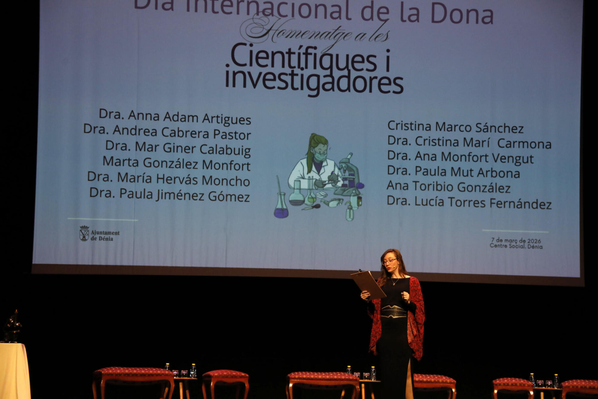 “Podéis ser lo que queráis”. Este es el mensaje que se quiso hacer llegar, el sábado 7 de marzo, desde el auditorio del Centro Social de Dénia, a todas las niñas, durante el homenaje a las mujeres científicas e investigadores; que fue el acto central del programa por el 8M, Día Internacional de la Mujer, organizado por la concejalía de Igualdad y Diversidad del Ayuntamiento de Dénia.