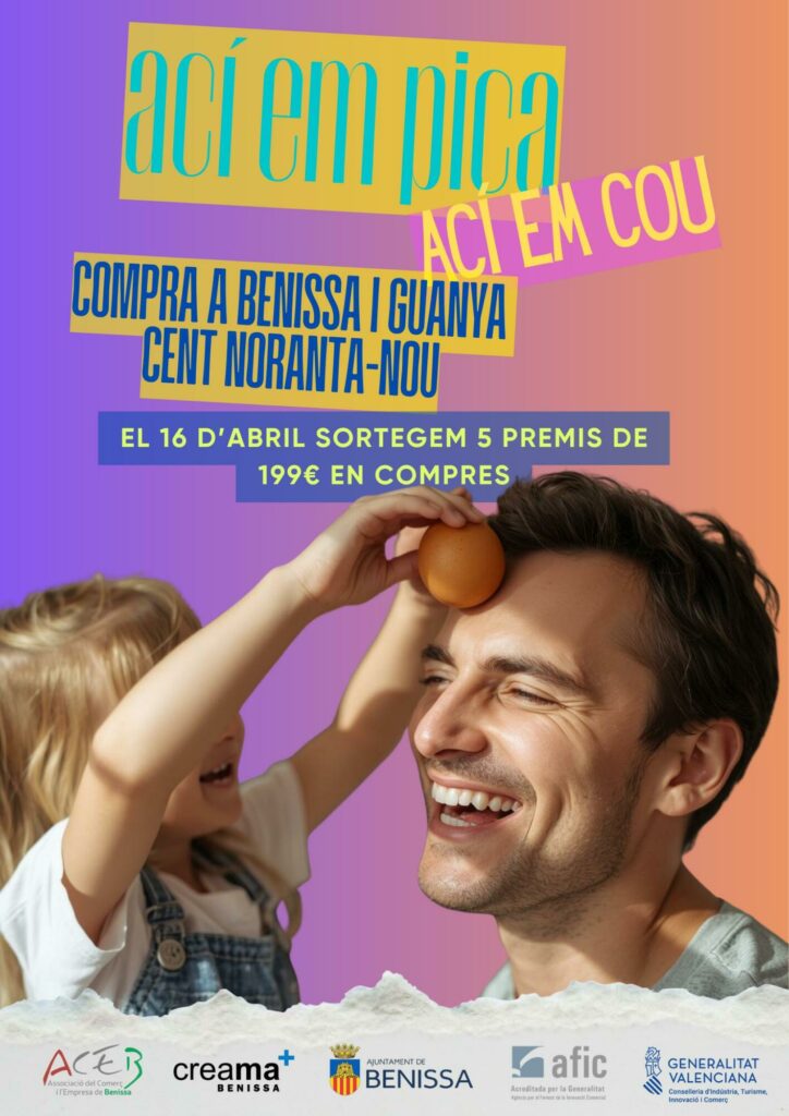 La Associació del Comerç i l’Empresa de Benissa (ACEB), con la colaboración del Ayuntamiento de Benissa, ha lanzado la campaña «ACÍ EM PICA, ACÍ EM COU, COMPRA A BENISSA I GUANYA CENT NORANTA-NOU», una iniciativa destinada a incentivar las compras en los comercios locales y fidelizar a los clientes.