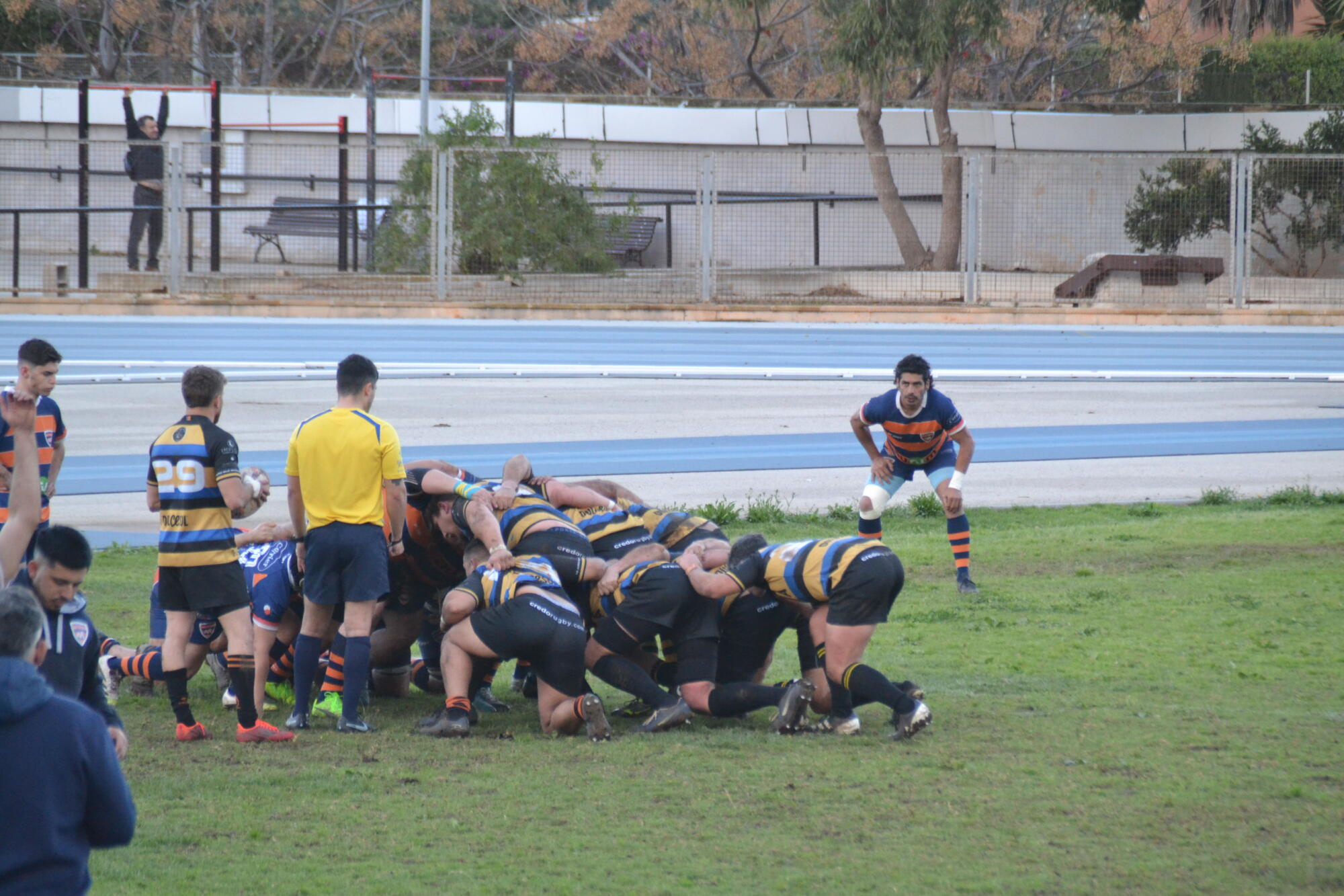 Los puntos comenzaron a llegar como fruto del trabajo colectivo. En la primera mitad, los ensayos de Torero, Ramiro y Fran, junto con dos transformaciones de Ramiro, permitieron a los locales marcharse al descanso con una ventaja de 19-3, mientras que el conjunto murciano solo pudo sumar mediante un golpe de castigo.
