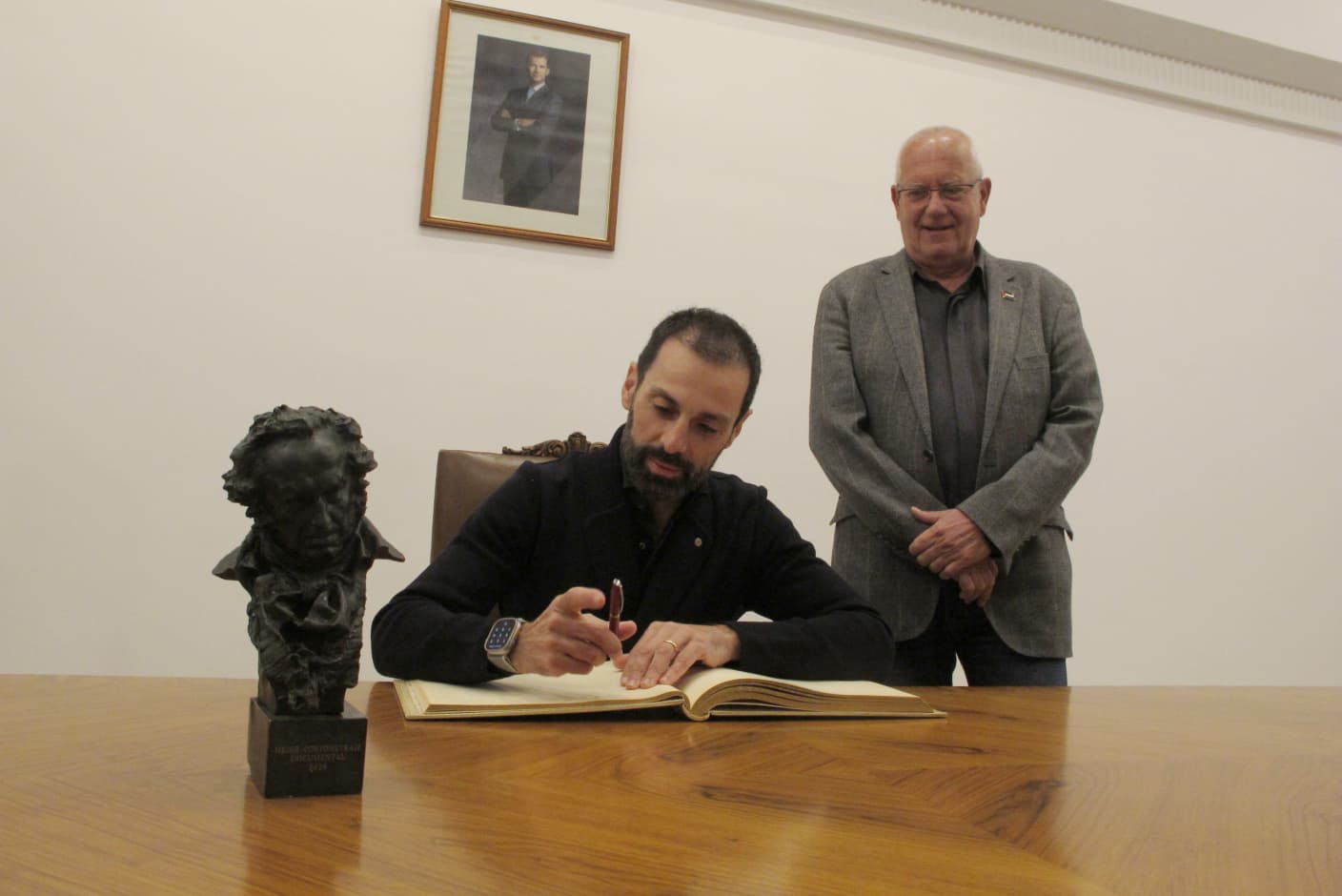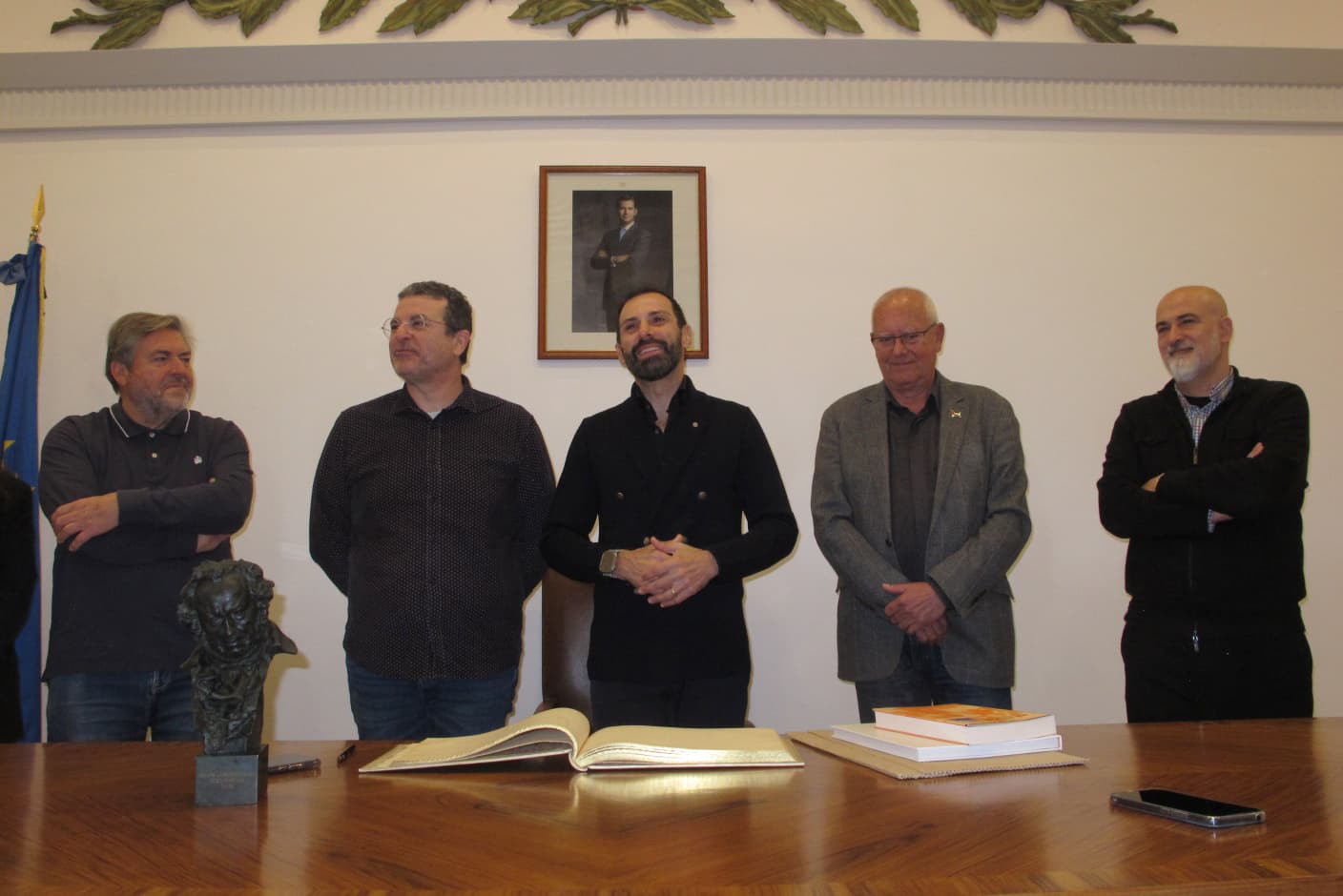 Durante el acto, el cineasta ha firmado en el libro de honor del Ayuntamiento, y posteriormente ha recibido de manos del alcalde, Vicent Grimalt, el catálogo de la exposición ‘Lo que el cine nos dejó’ y un grabado antiguo del Castillo; mientras que el concejal de Cultura, Raúl García de la Reina, le ha hecho entrega de una copia del libro ‘Dénia, Ciutat de Cine’.